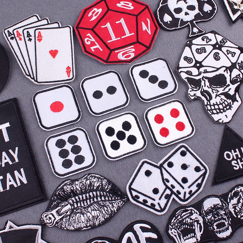 Embroidered Patch Black and white Iron On Patches For Clothing DIY Dice Badges On Backpack Punk Hook Loop Patches On Clothes