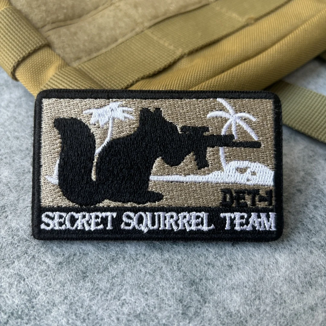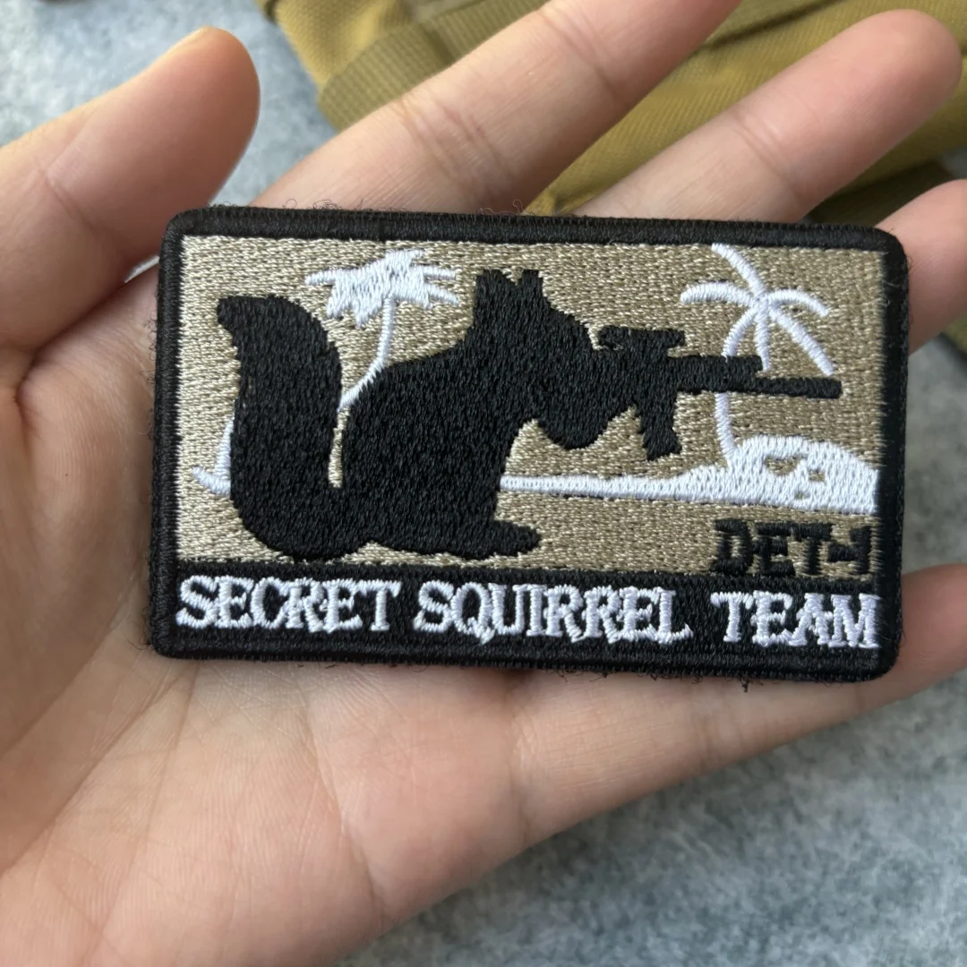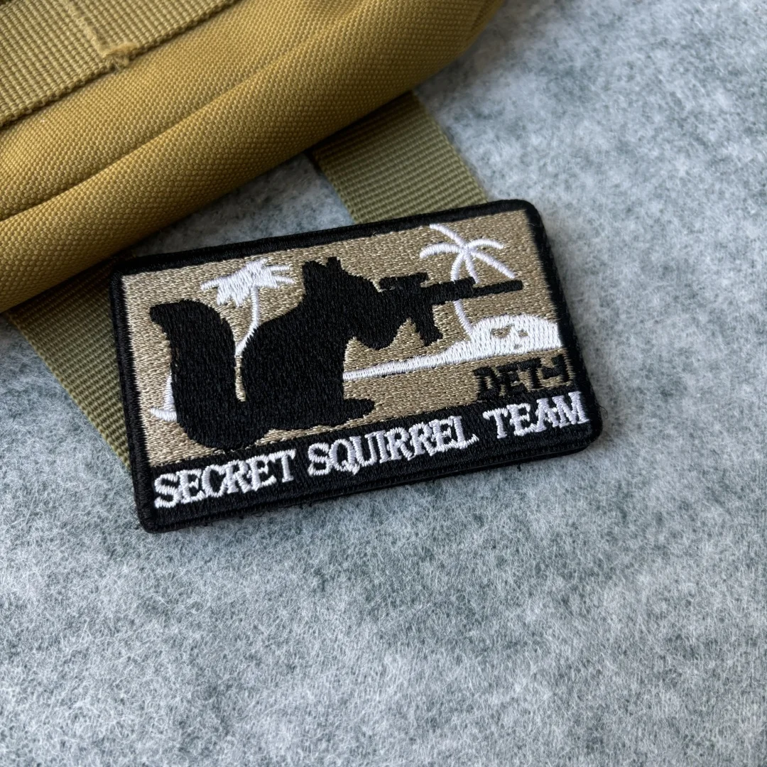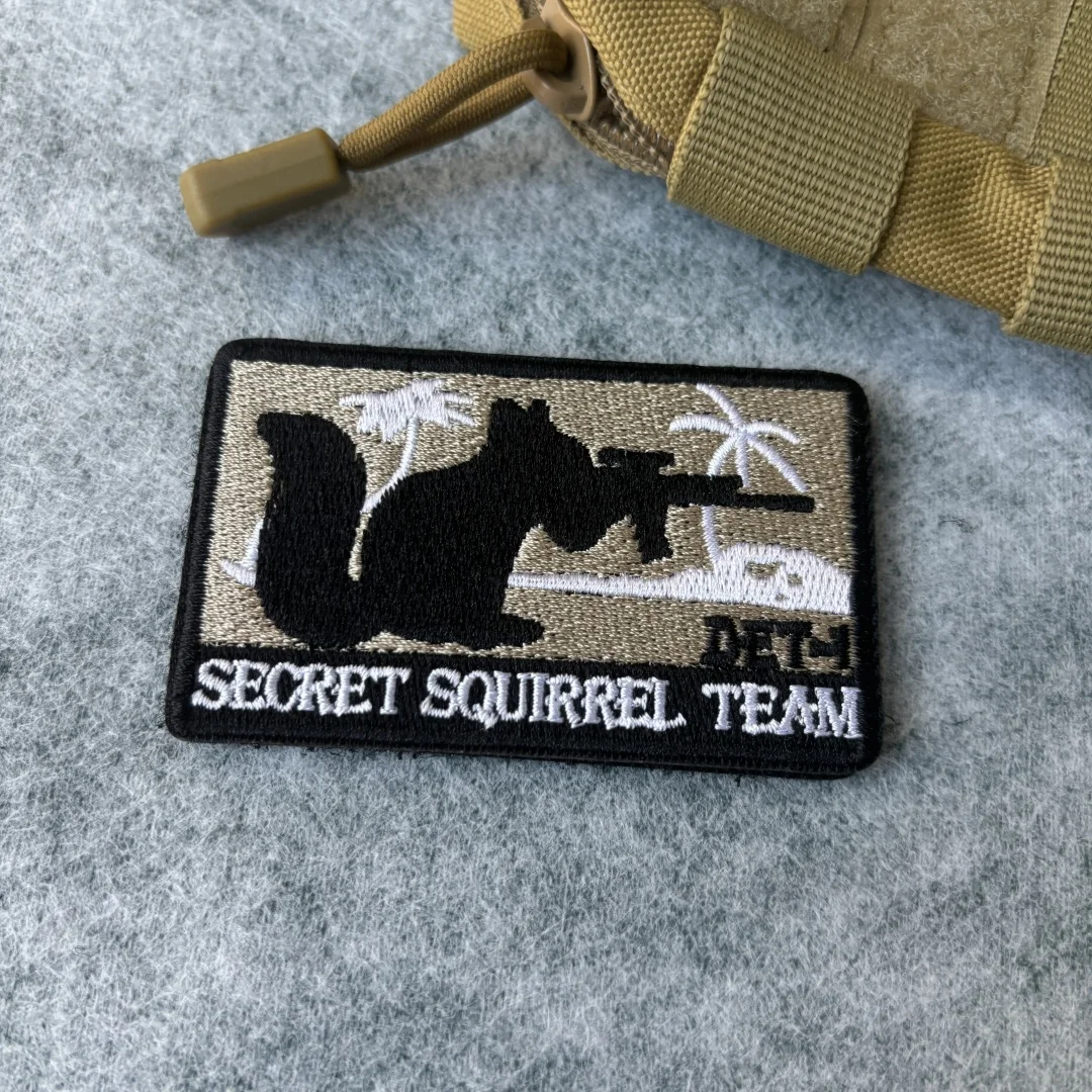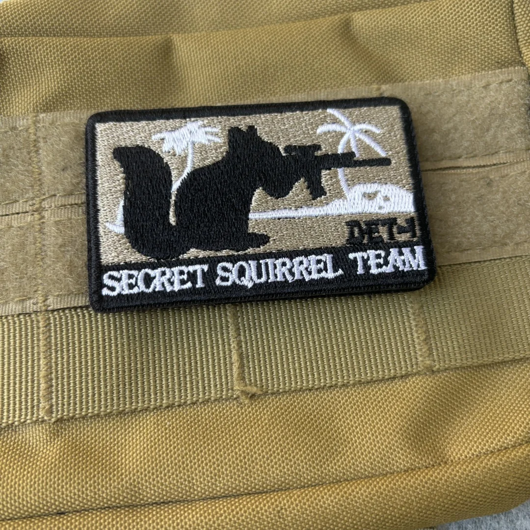 Parche bordado del equipo SECRET SQUIRREL, parche táctico con gancho y bucle de calavera, brazalete del ejército de zorro, insignia de moral militar, pegatinas para mochila
