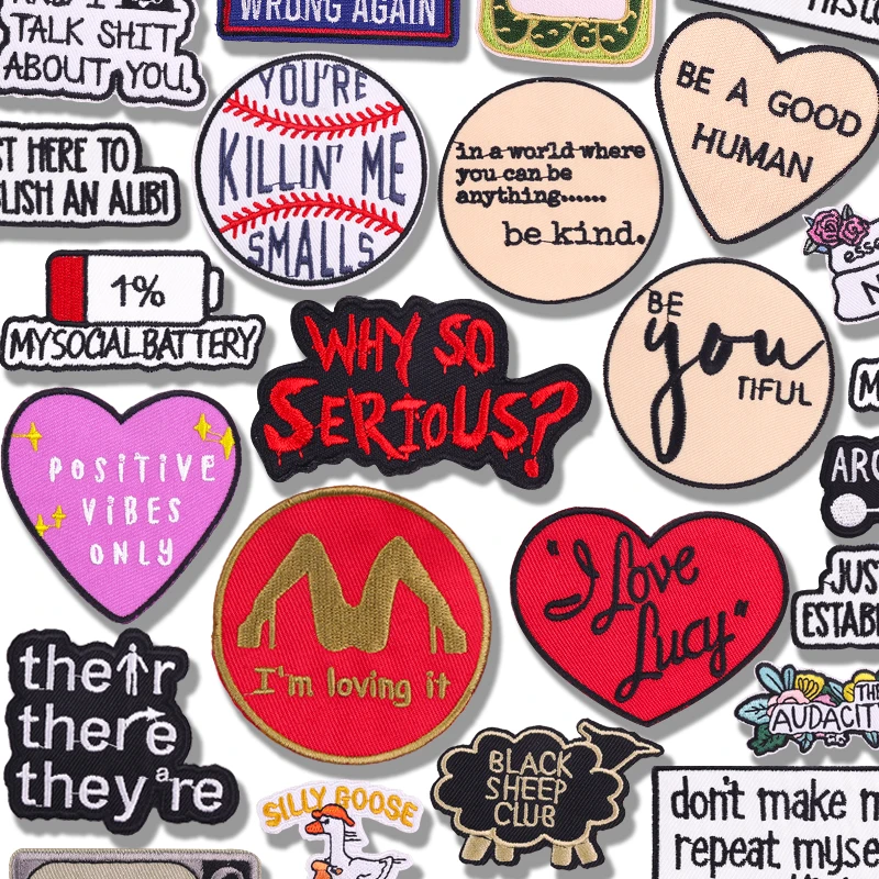 Parche bordado con eslogan de letras DIY, chaquetas, sombreros, mochilas, parches bordados, parches para planchar para ropa, insignias de costura de letras