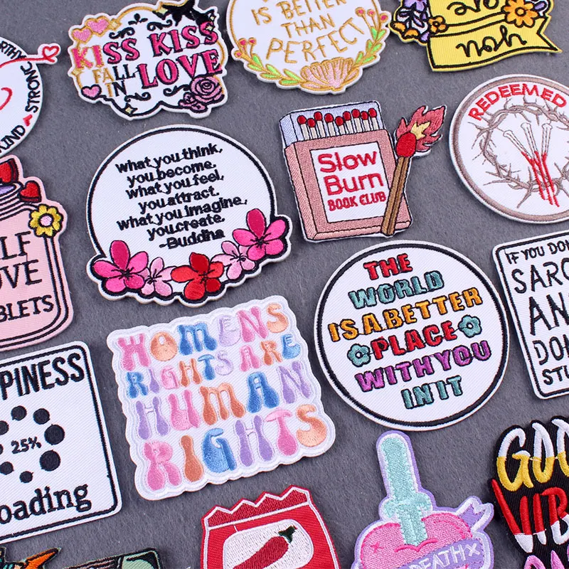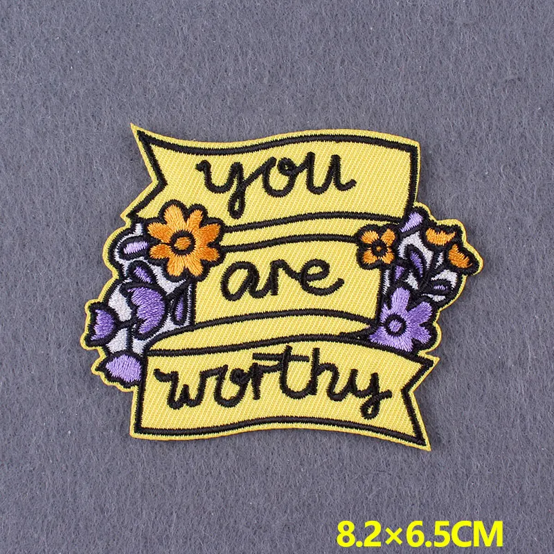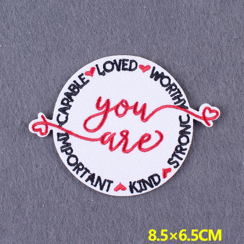 Parche de bordado, eslogan positivo, parches termoadhesivos para ropa, decoración de insignias de rayas con palabras DIY