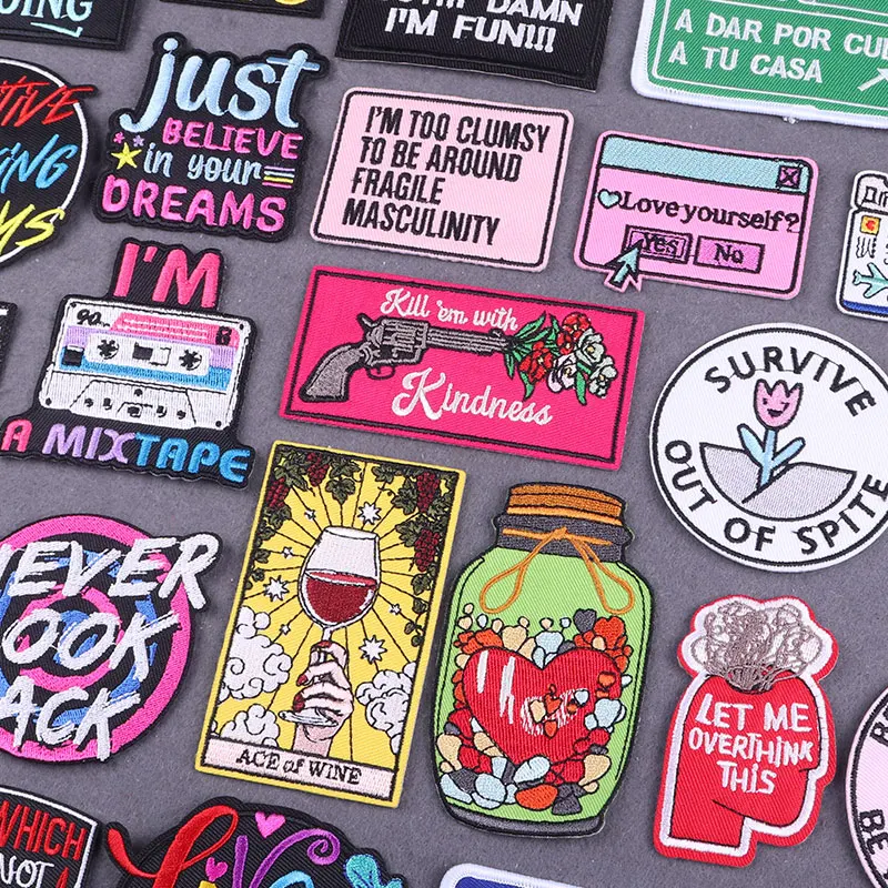 Parche bordado con eslogan positivo, parches para planchar para ropa, parches termoadhesivos para ropa, insignias de rayas con palabras DIY, decoración