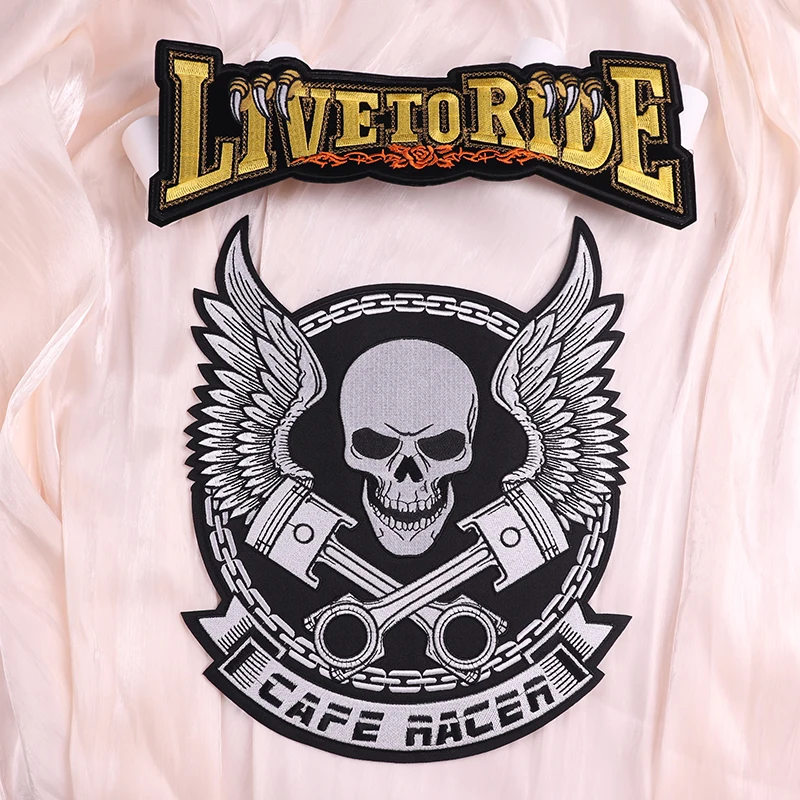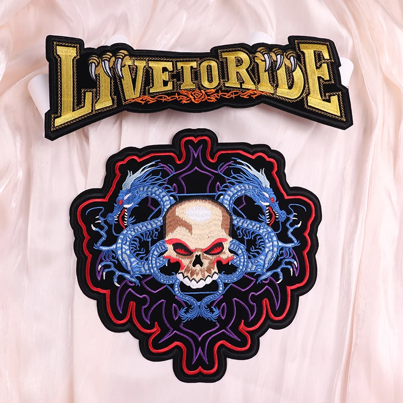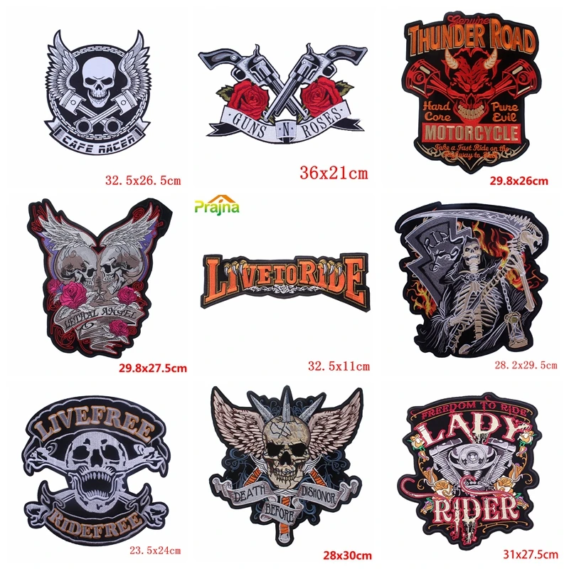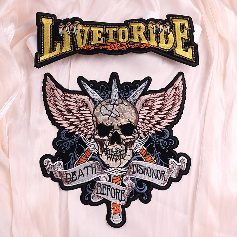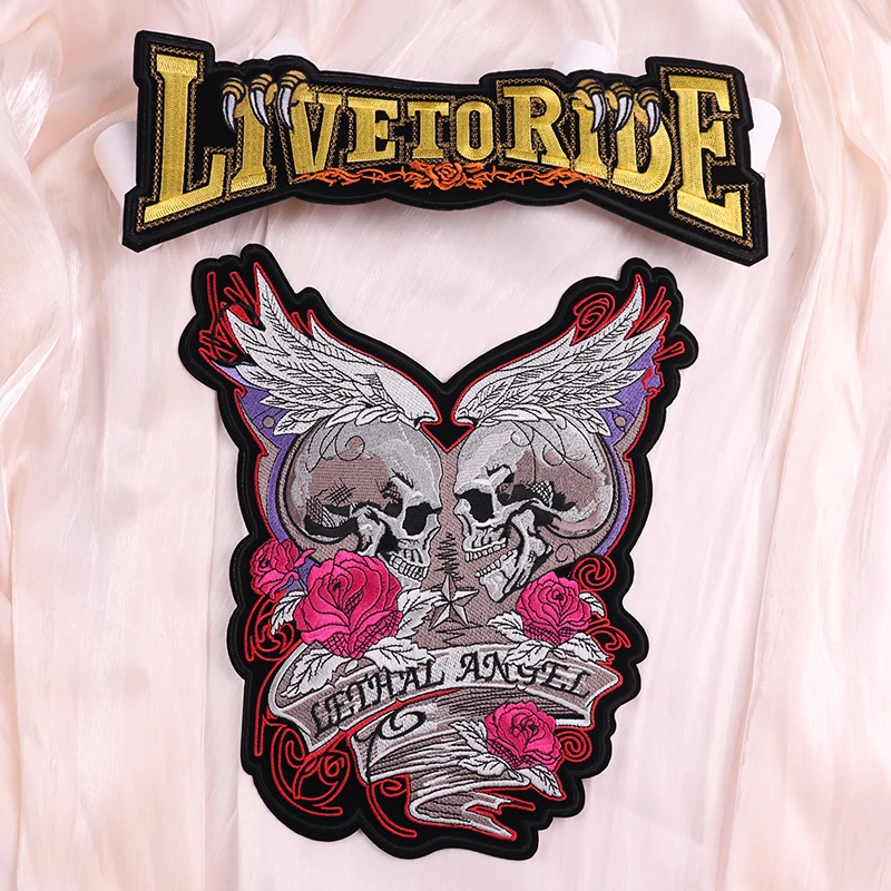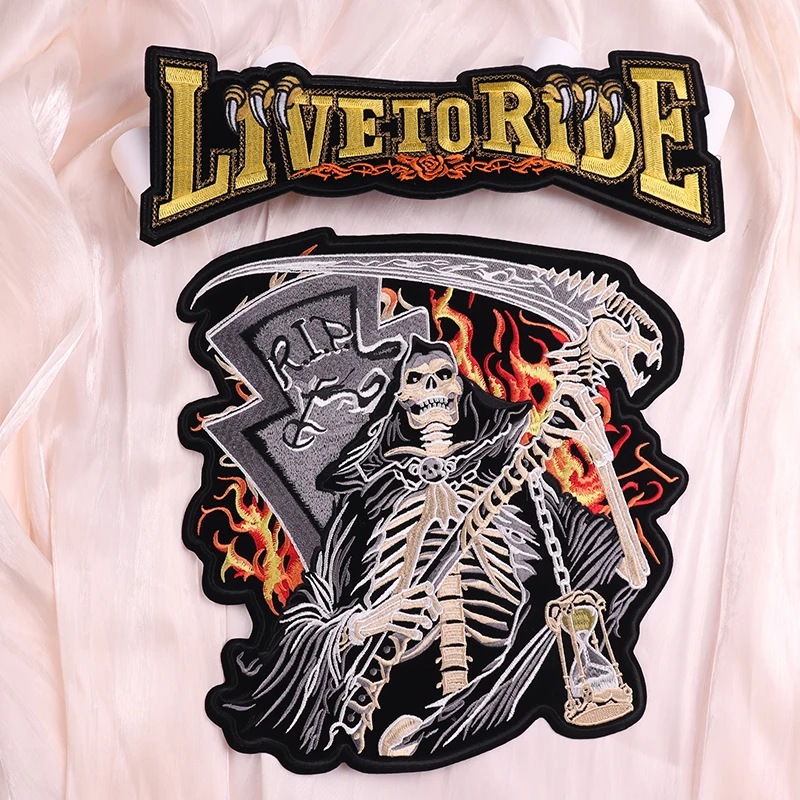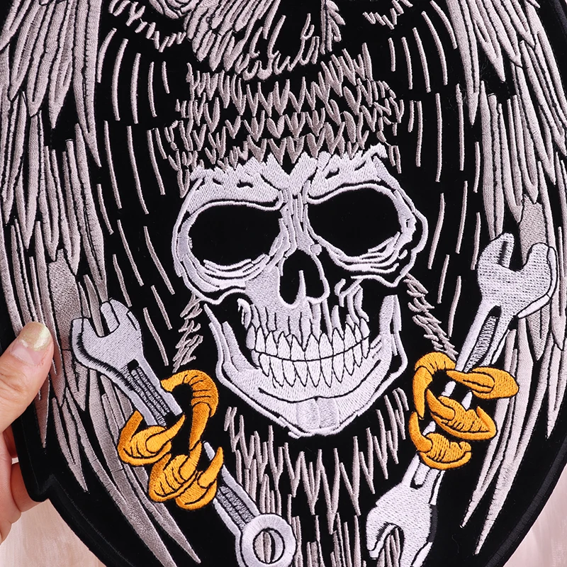 Parche bordado de espalda grande para chaquetas, pantalones vaqueros, esqueleto Punk, motocicleta, motociclista, parches para planchar para ropa, apliques de costura, 2 uds.