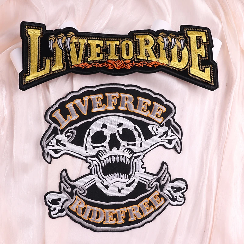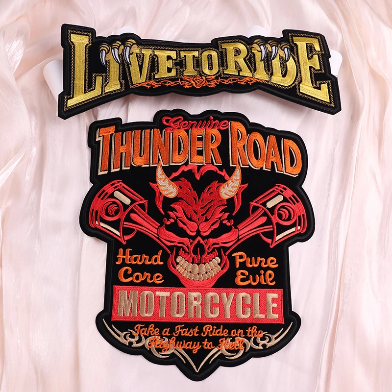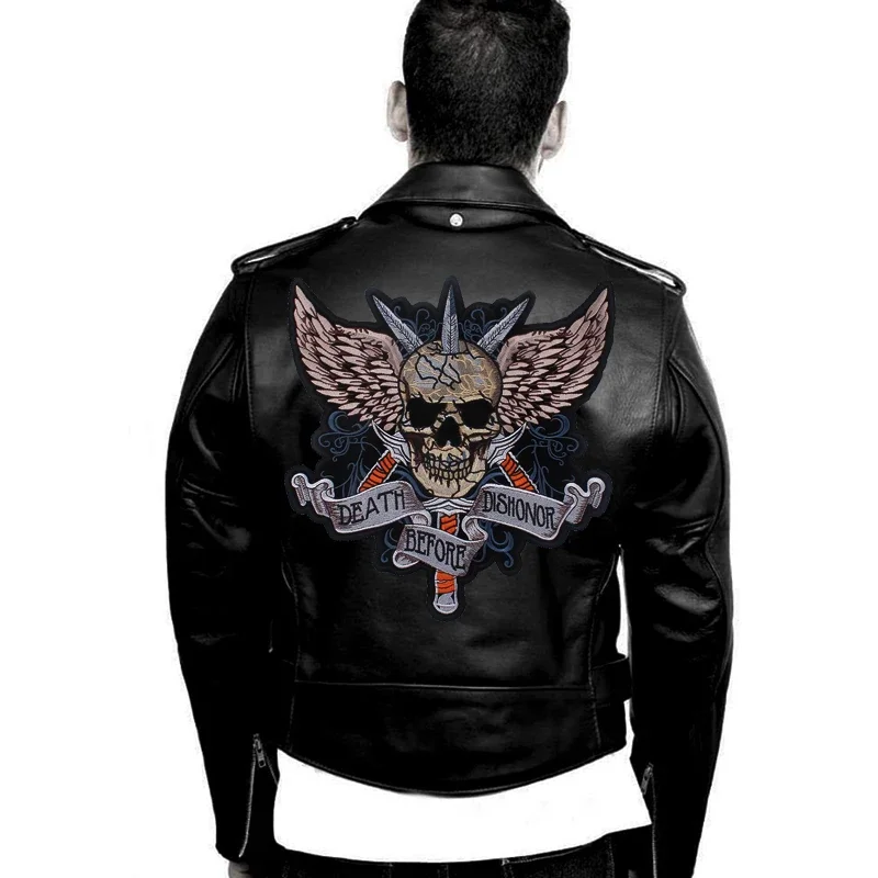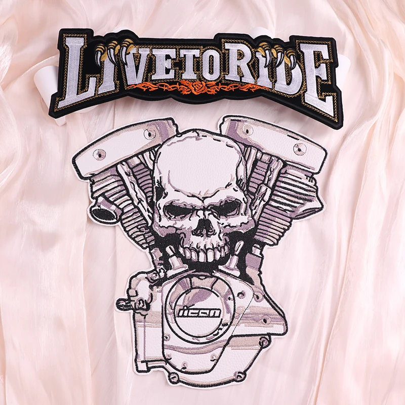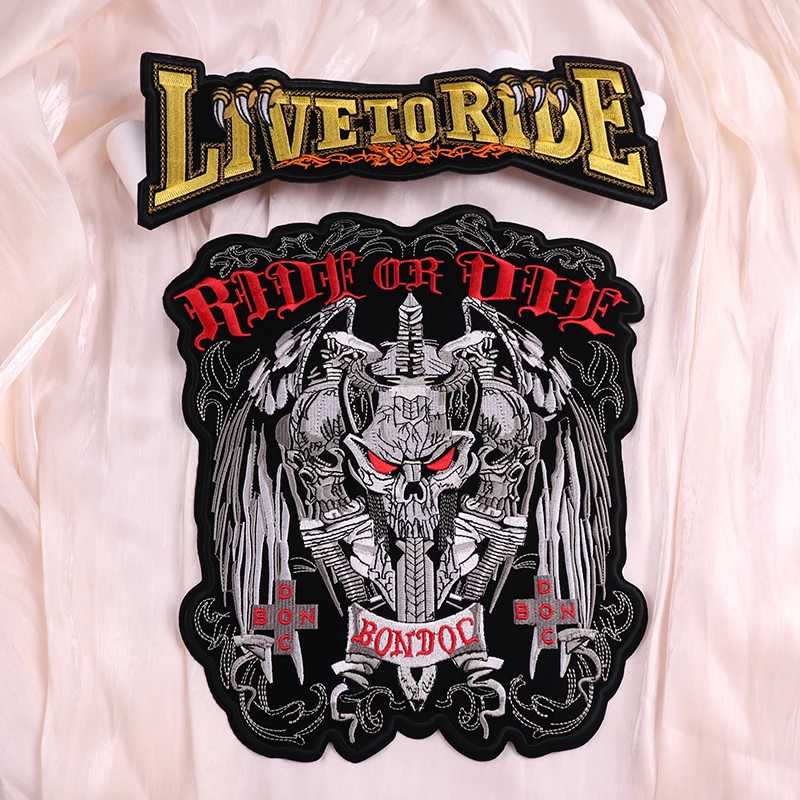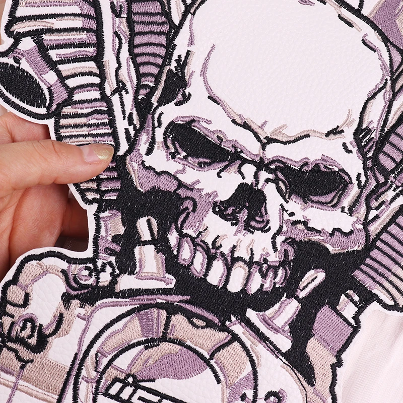 Parche bordado de espalda grande para chaquetas, pantalones vaqueros, esqueleto Punk, motocicleta, motociclista, parches para planchar para ropa, apliques de costura, 2 uds.