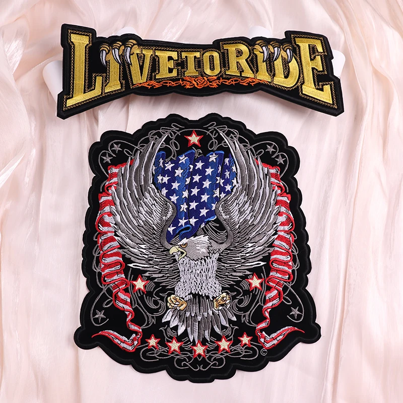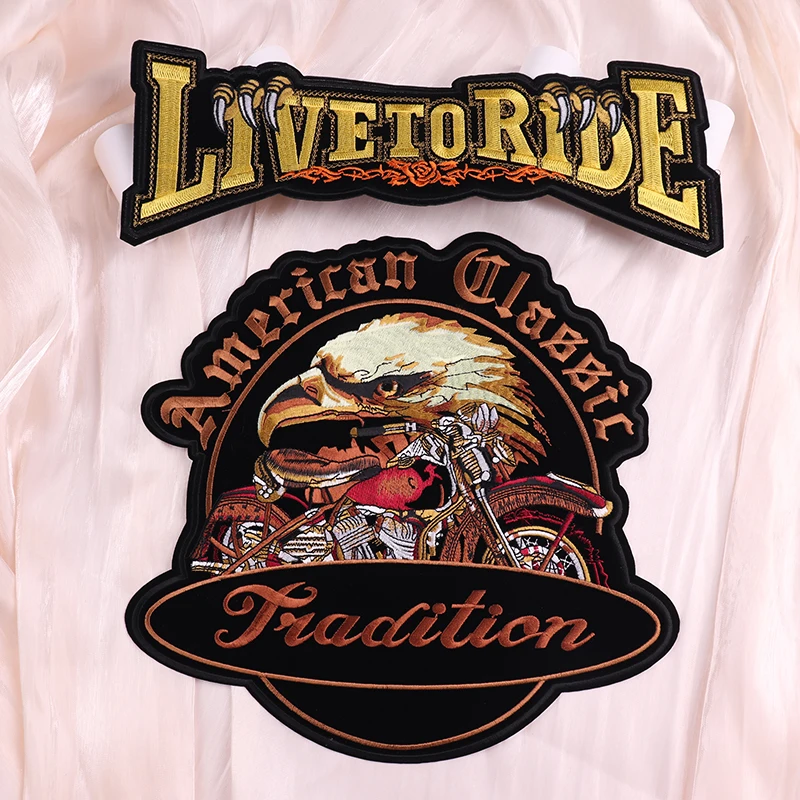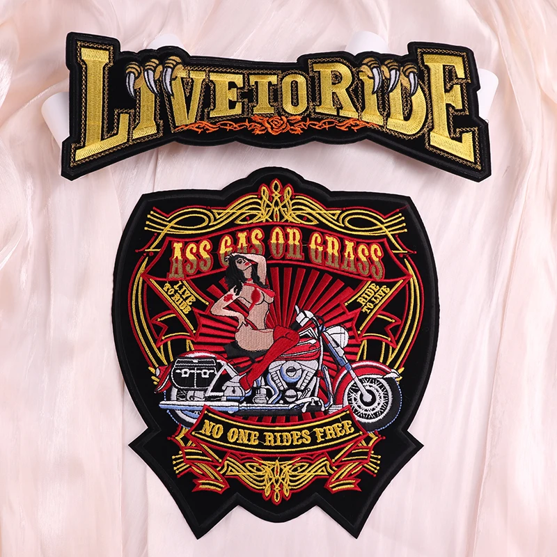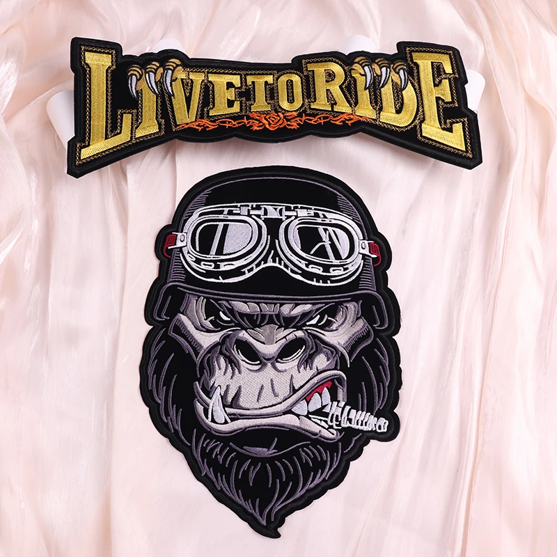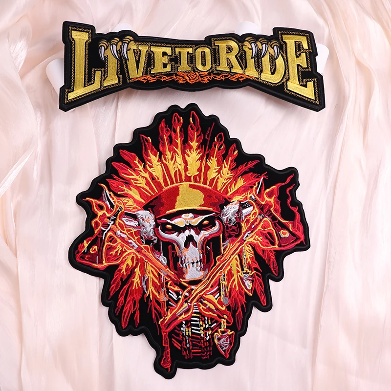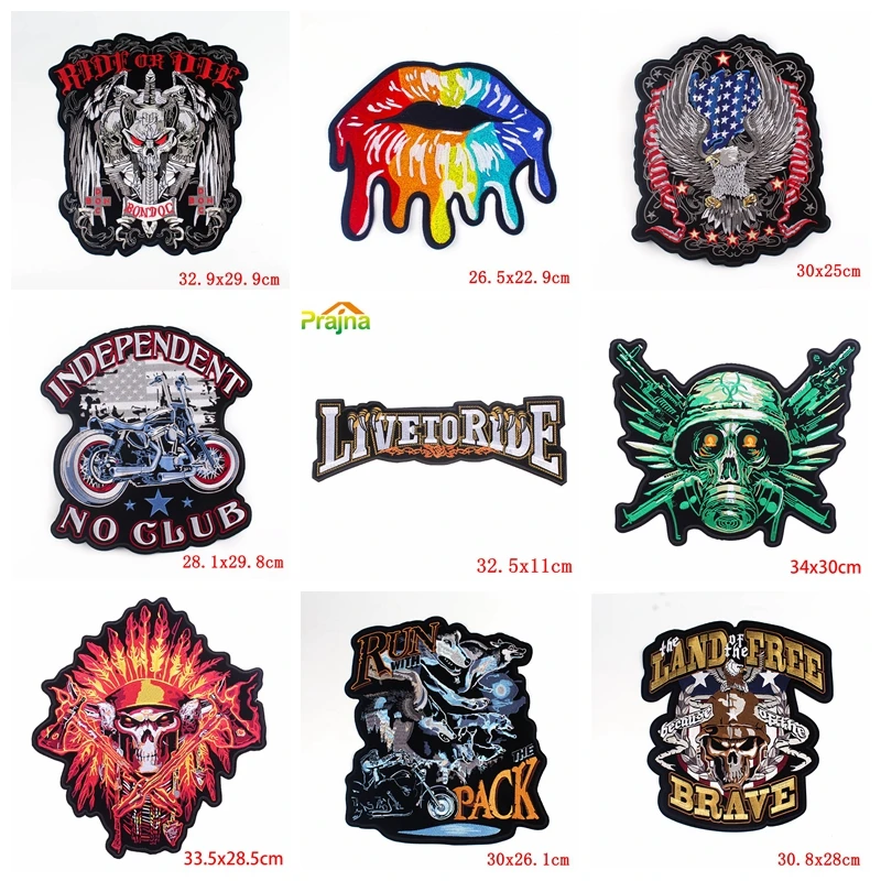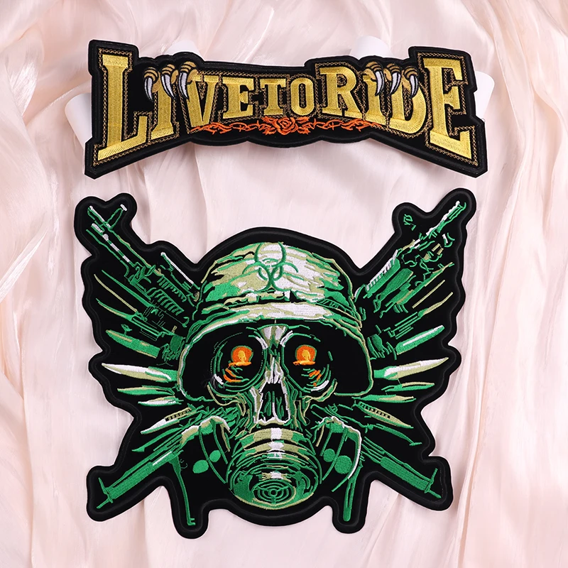 Parche bordado de espalda grande para chaquetas, pantalones vaqueros, esqueleto Punk, motocicleta, motociclista, parches para planchar para ropa, apliques de costura, 2 uds.