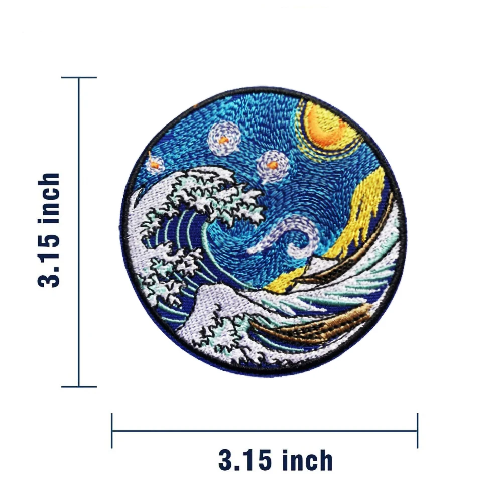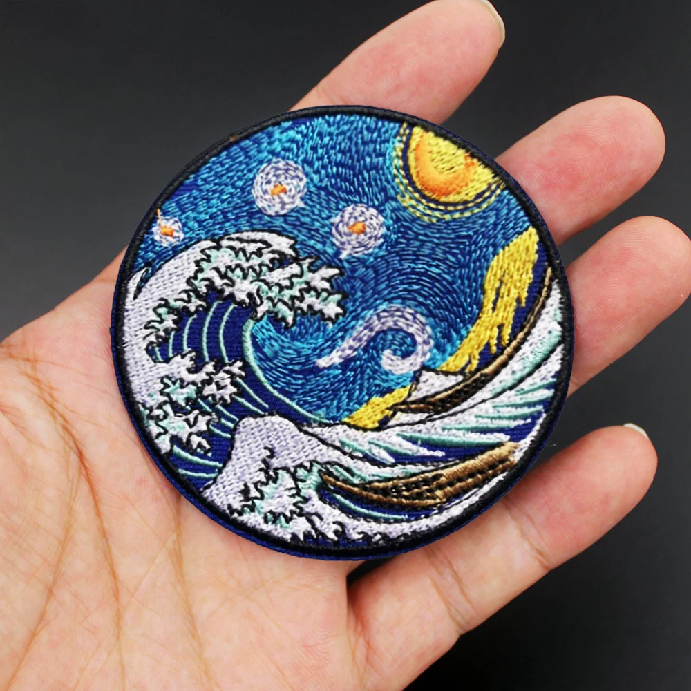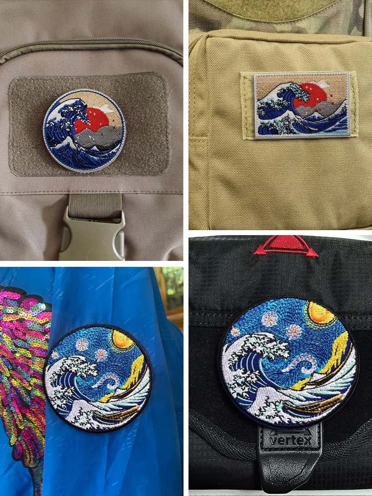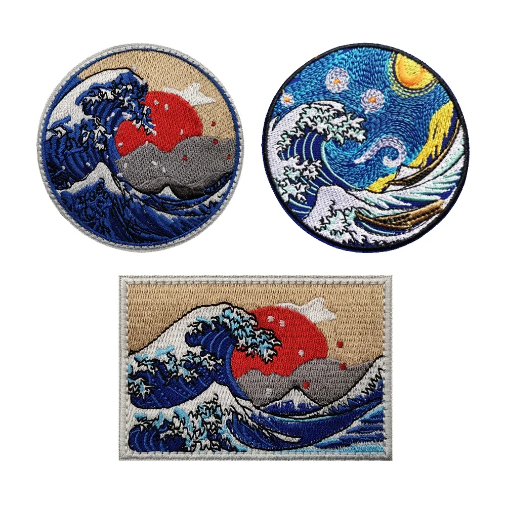 Surf Star bordado gancho y bucle Kanagawa Onami moral insignia camiseta bolsa sombrero parches decorativos accesorios de ropaCaracterísticas del productoLos accesorios de personalidad de la ropa se pueden pegar en ropa, mochilas, sombreros y otros productos, DIY personalizado. Demuestra que eres diferente.