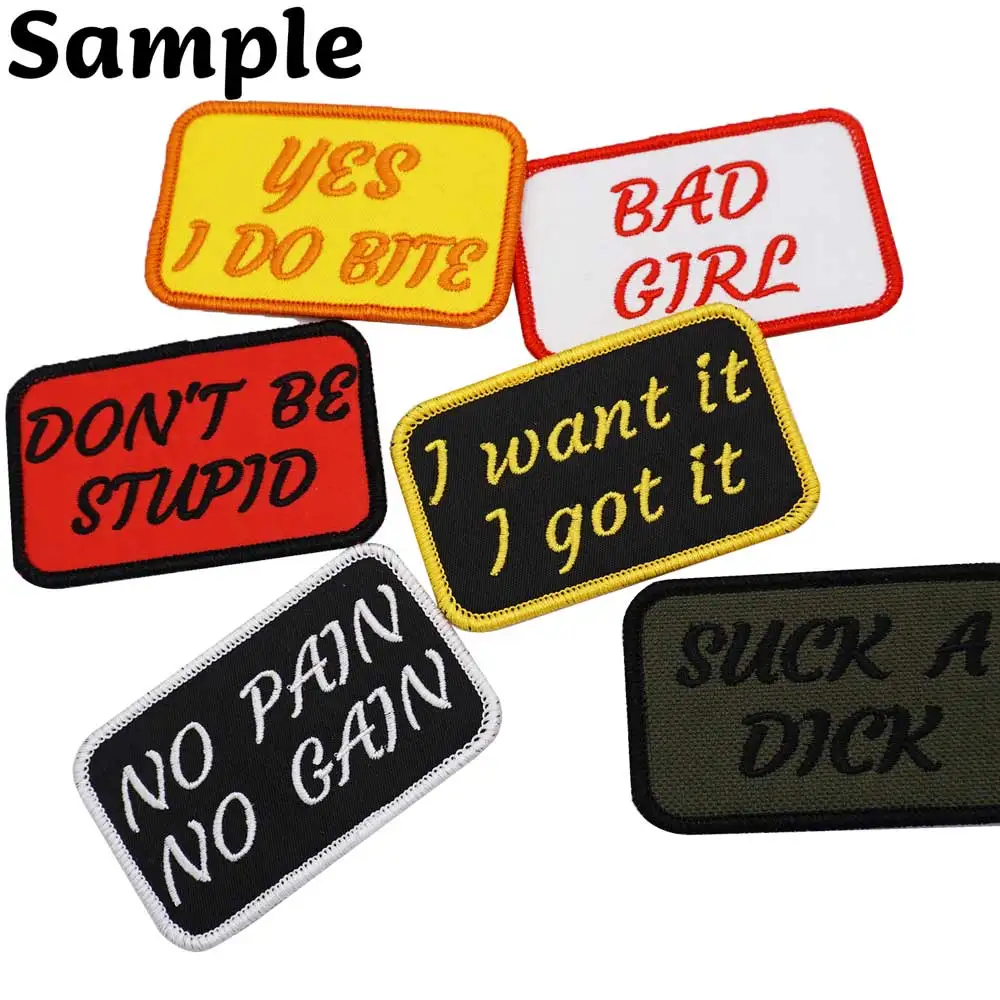 Parche bordado con etiqueta de nombre de 2 líneas, personalizado, borde merrowed