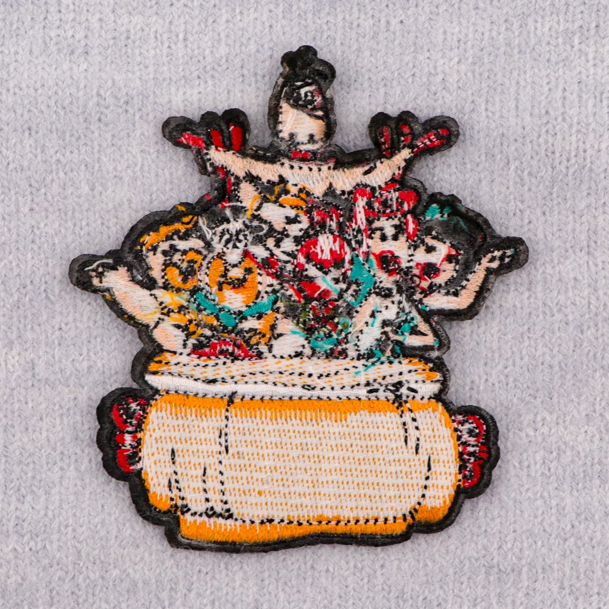 Hay pegamento en la parte posterior, que se puede planchar o coser.