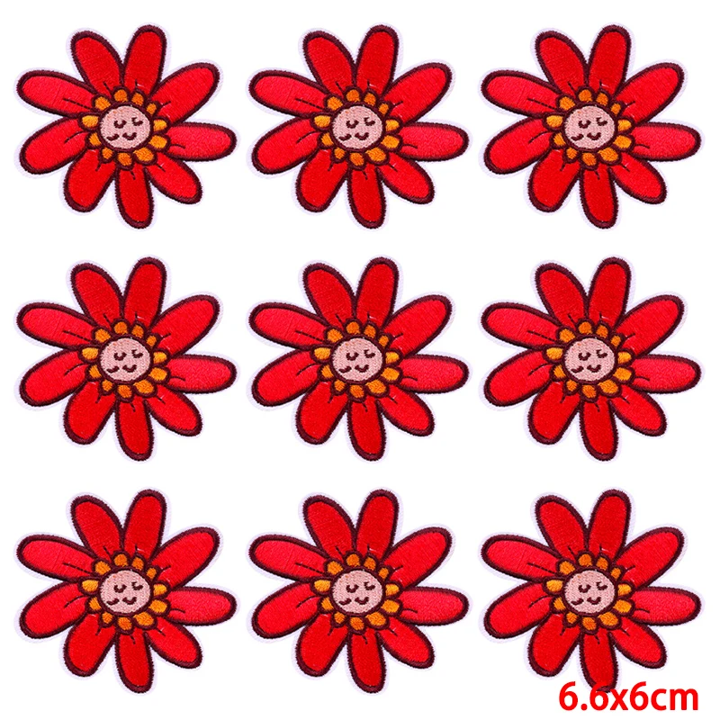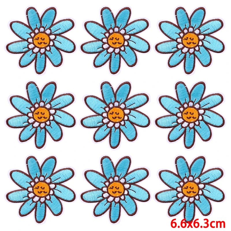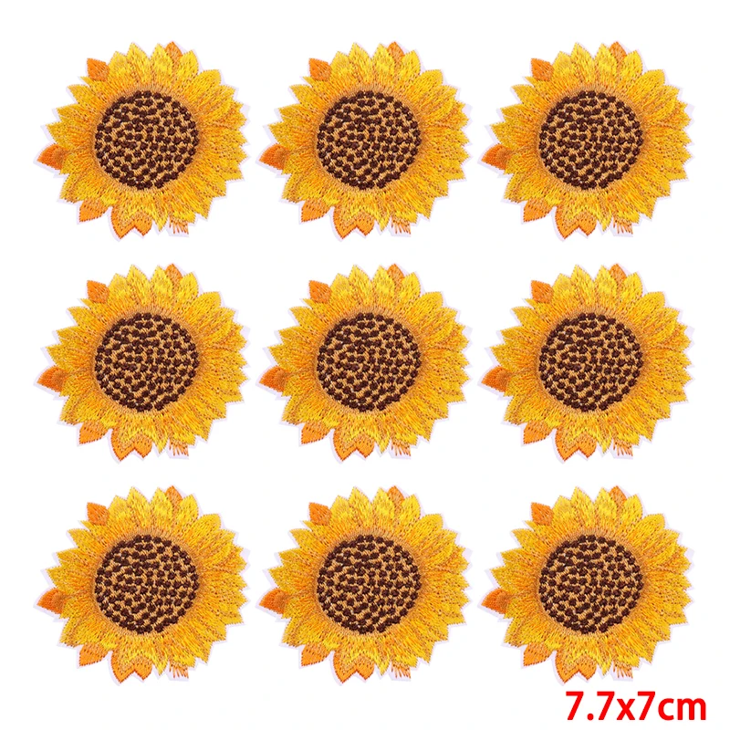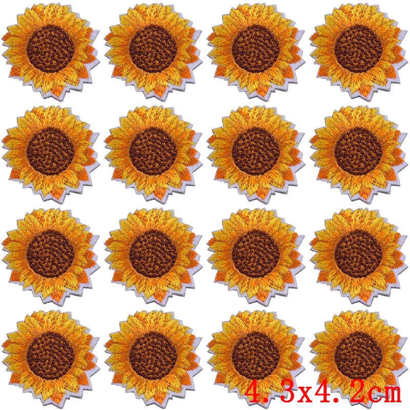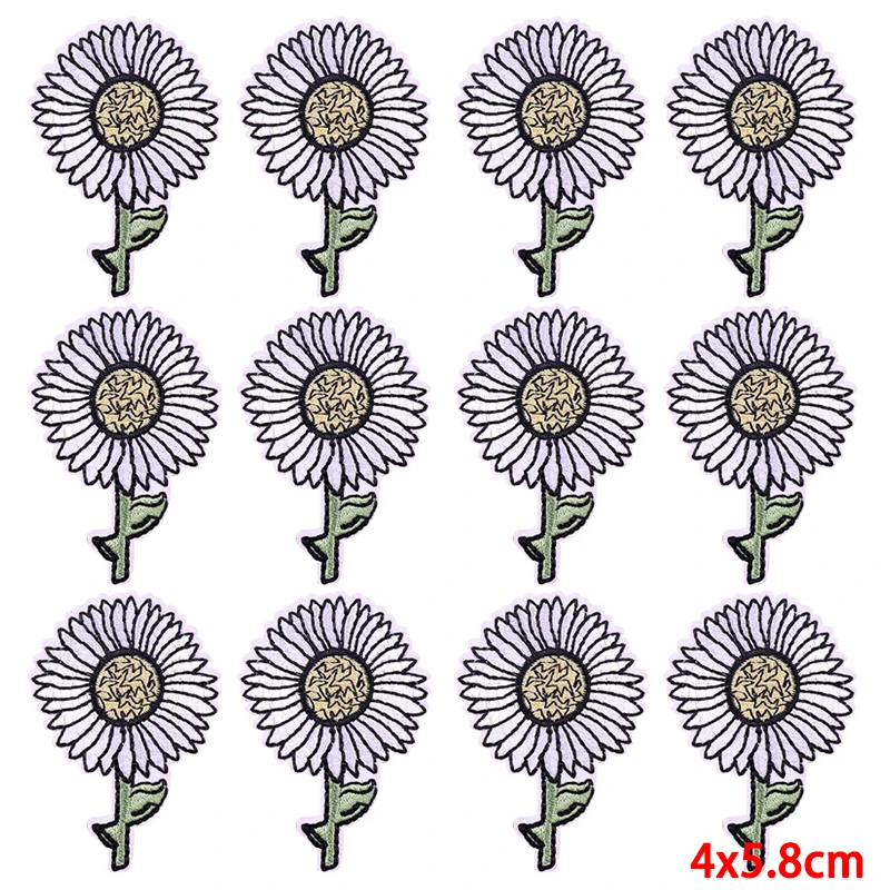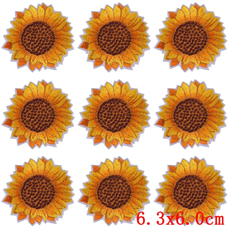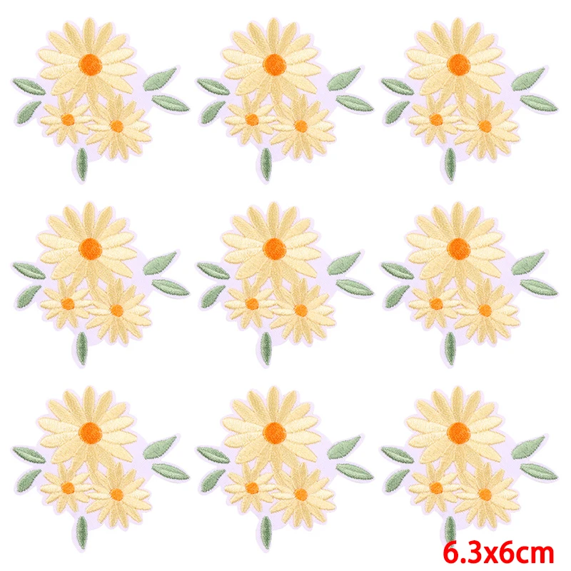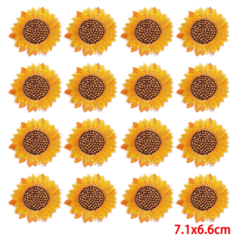 10 unids/lote de parches de flores de dibujos animados, parches bordados para ropa, parche Fusible de girasol, parches para planchar para ropa, apliques DIY