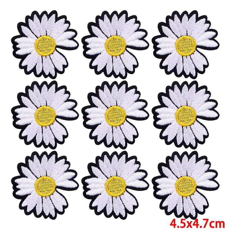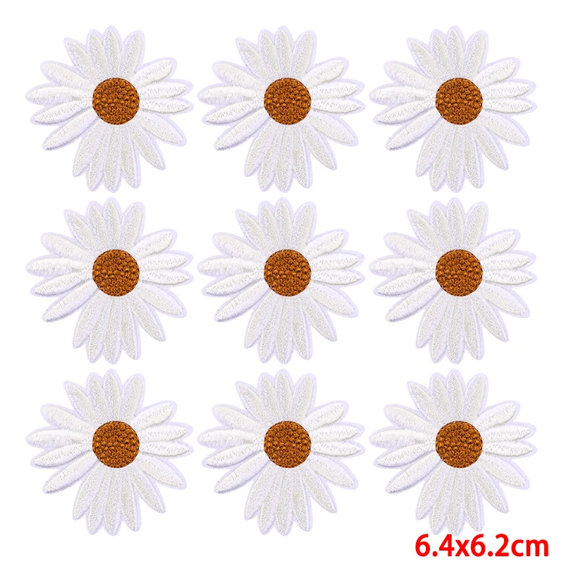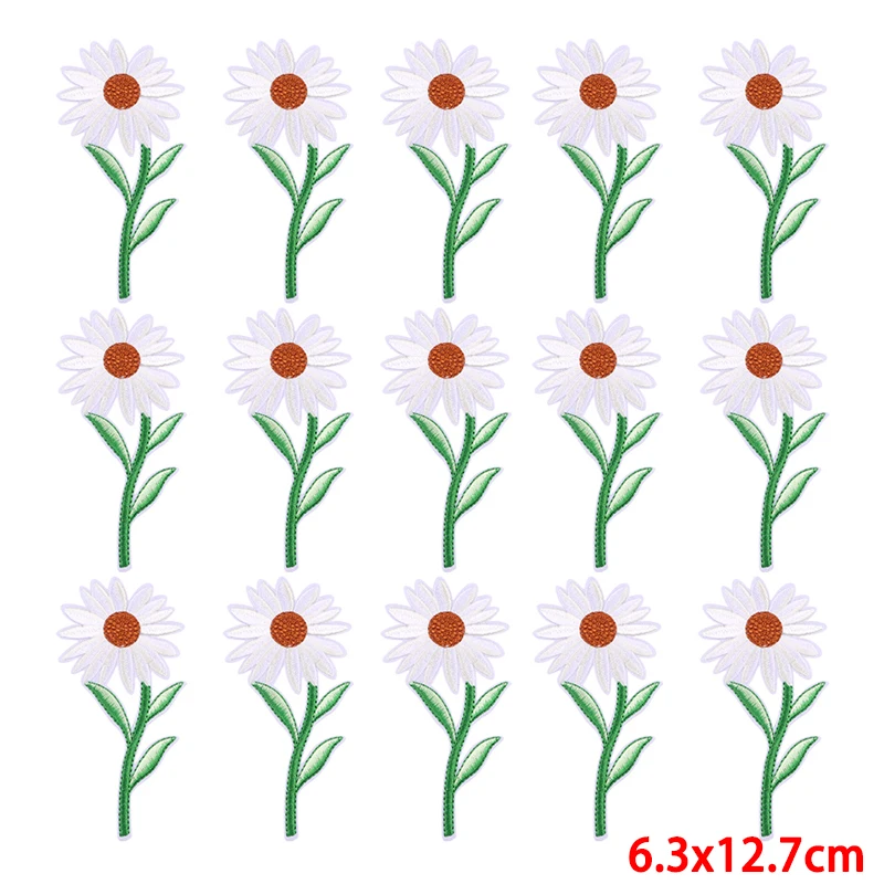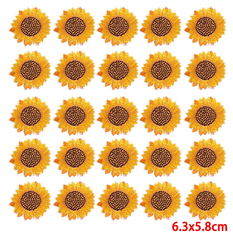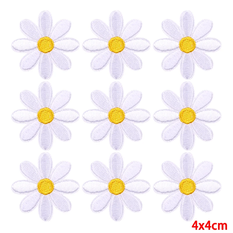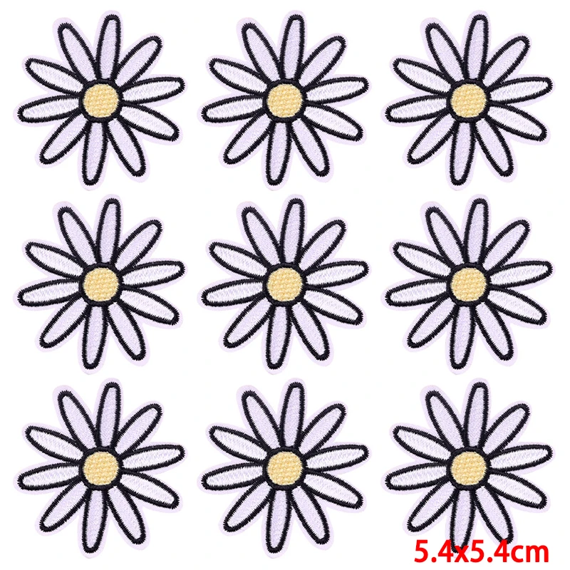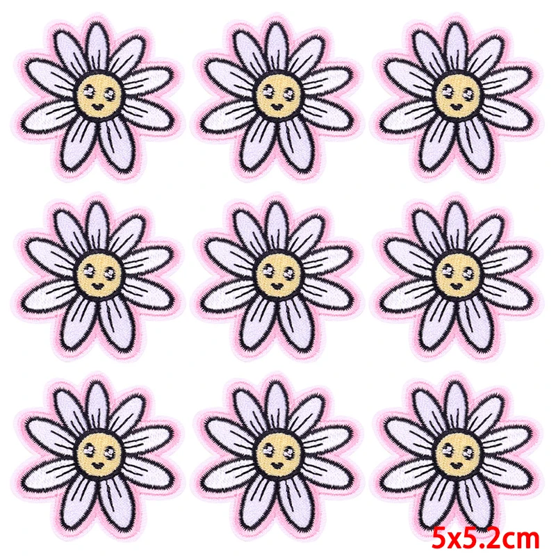 10 unids/lote de parches de flores de dibujos animados, parches bordados para ropa, parche Fusible de girasol, parches para planchar para ropa, apliques DIY