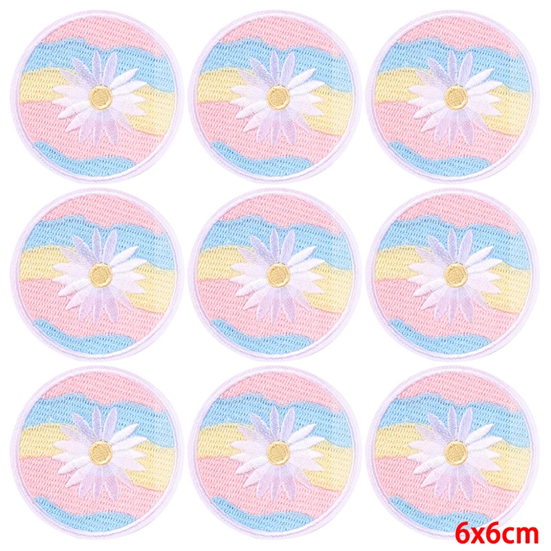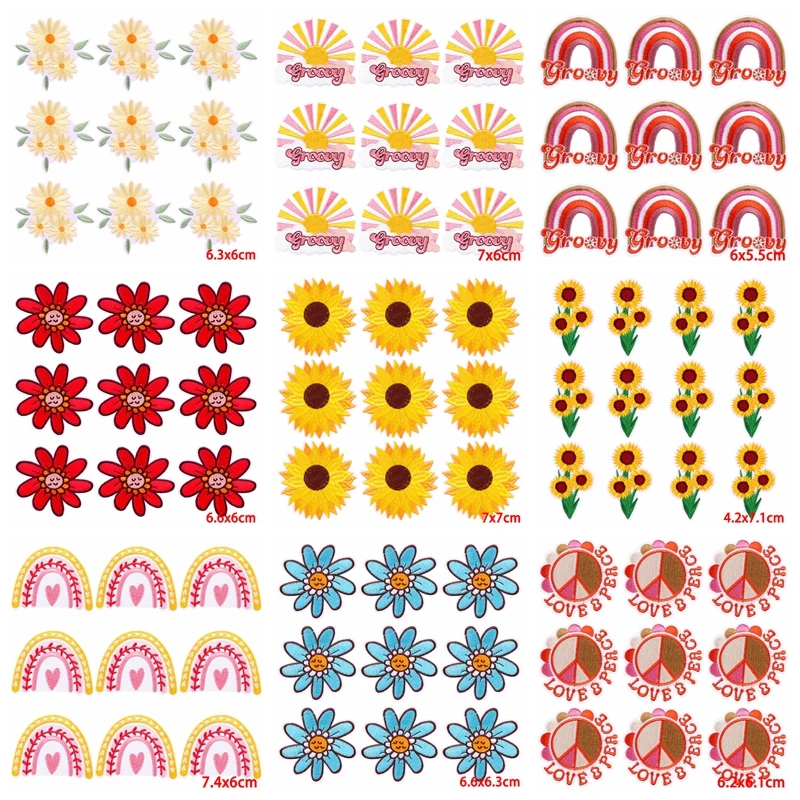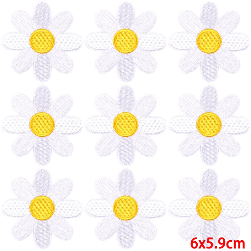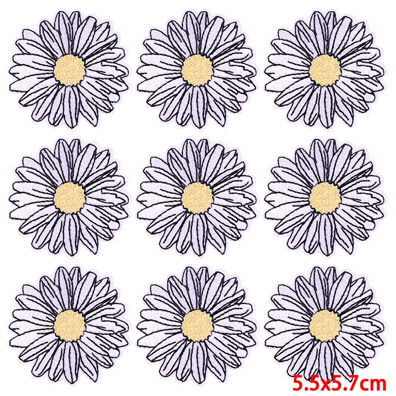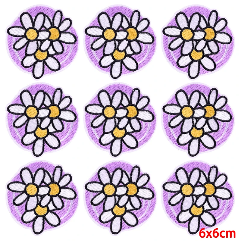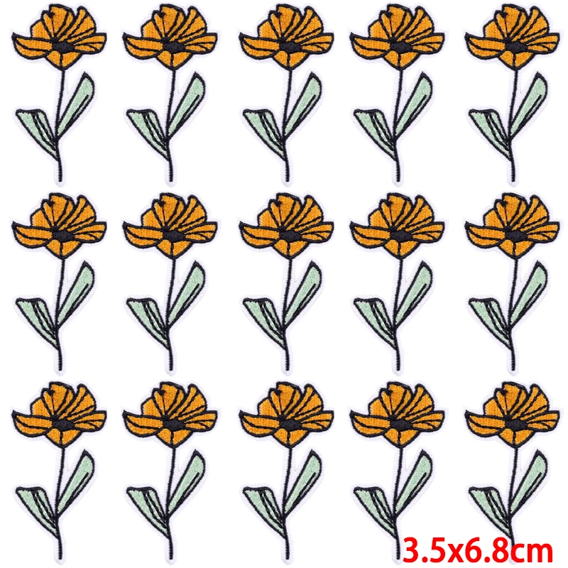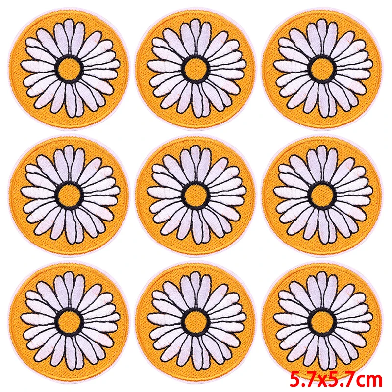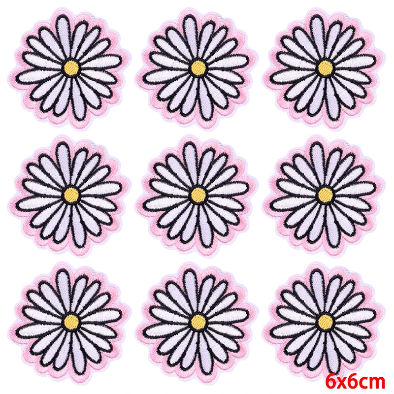 10 unids/lote de parches de flores de dibujos animados, parches bordados para ropa, parche Fusible de girasol, parches para planchar para ropa, apliques DIY