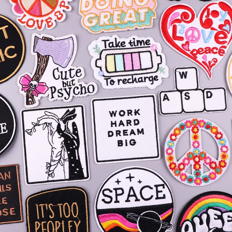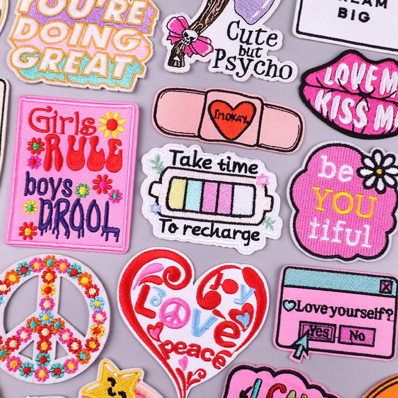 Parche bordado de flores con letras rosa/arcoíris, parches bordados de dibujos animados DIY en ropa, chaqueta, pantalones vaqueros, apliques para coser, parches de hierro