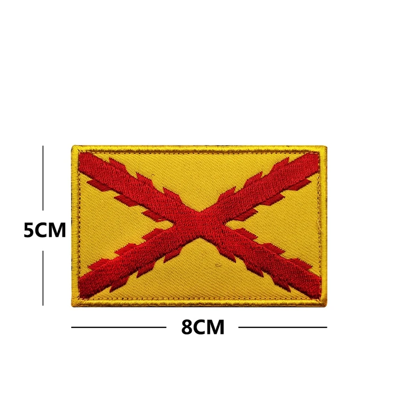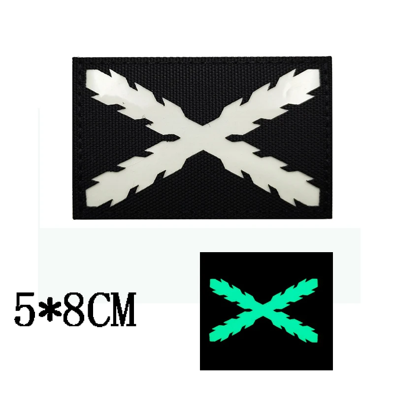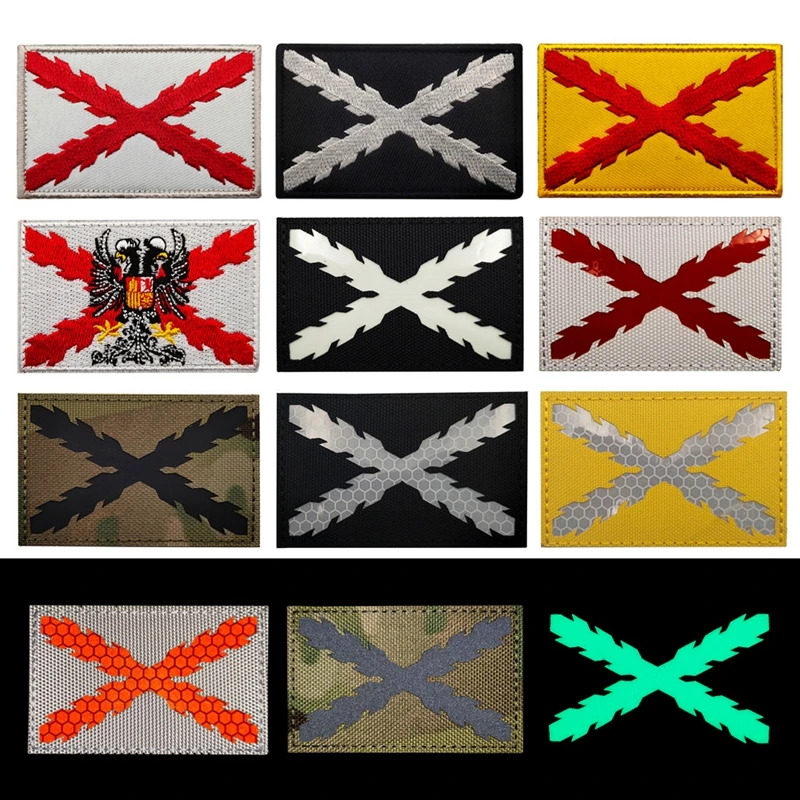 Parche bordado de gancho y bucle con bandera cruzada de Borgoña español, reflectante + Luminoso + insignia para mochila, parche para sombrero, brazalete, parches DIY