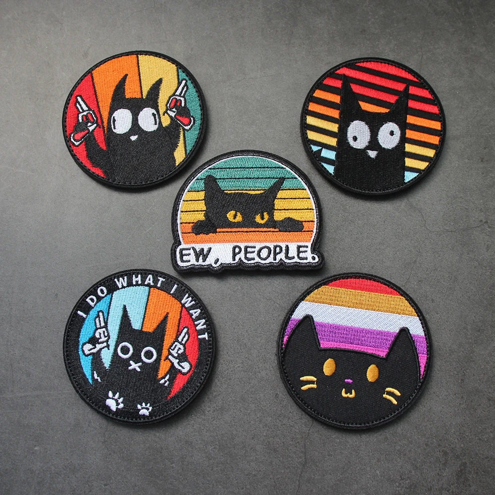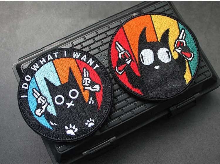 Parche bordado de gato arcoíris EW PEOPLE I Do What I Want, insignia táctica, apliques DIY, brazalete para decoración de bolsas de ropa