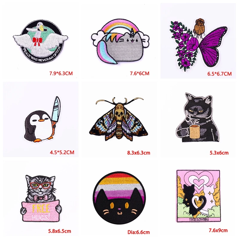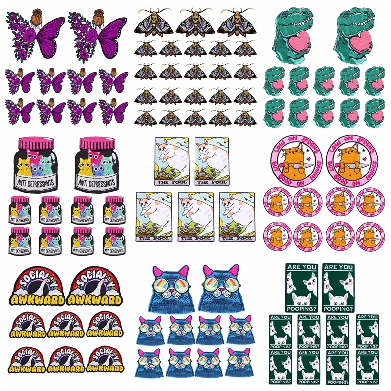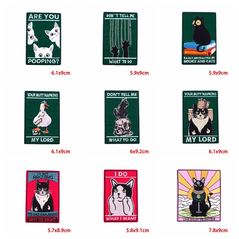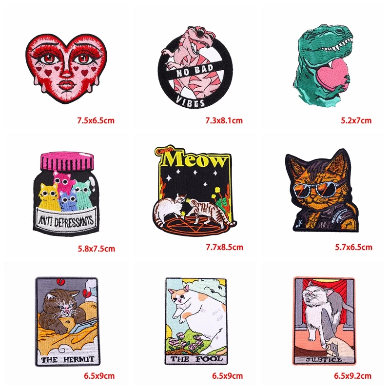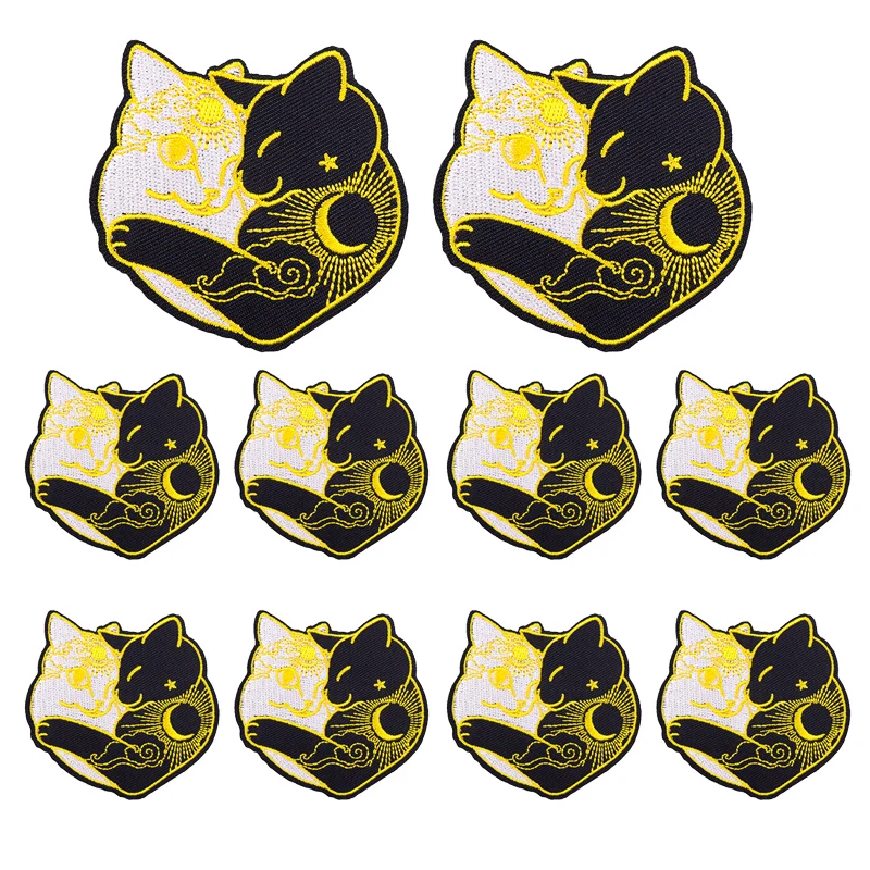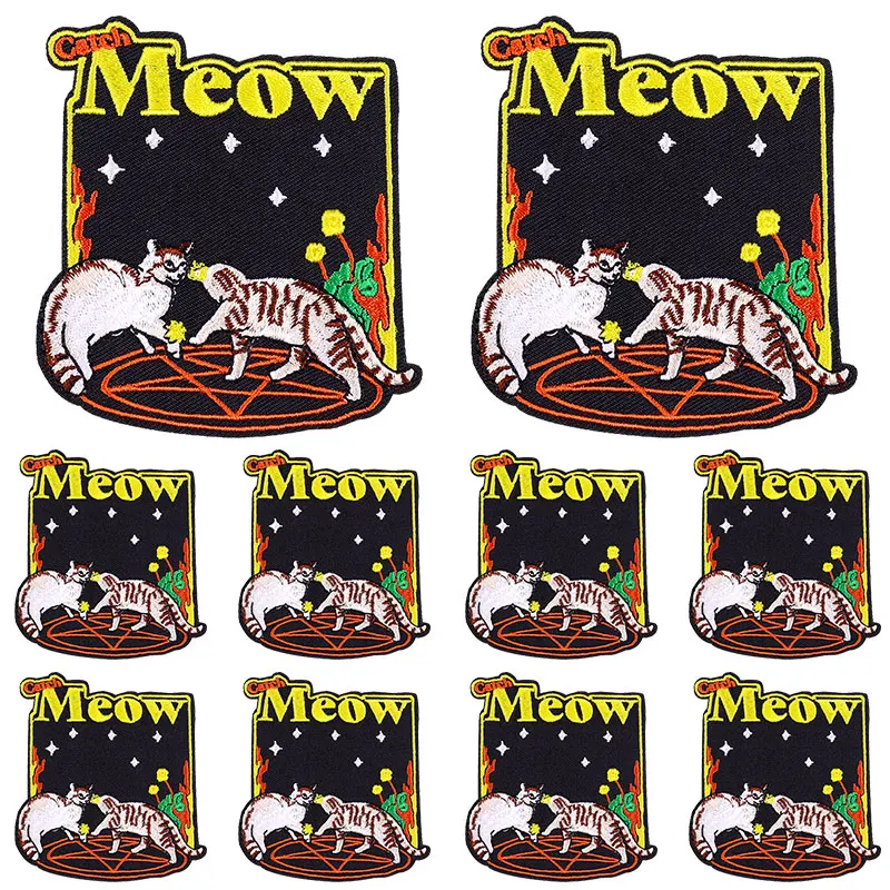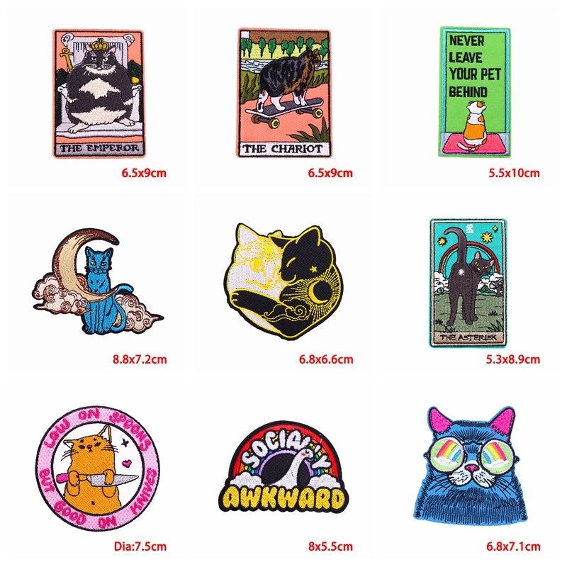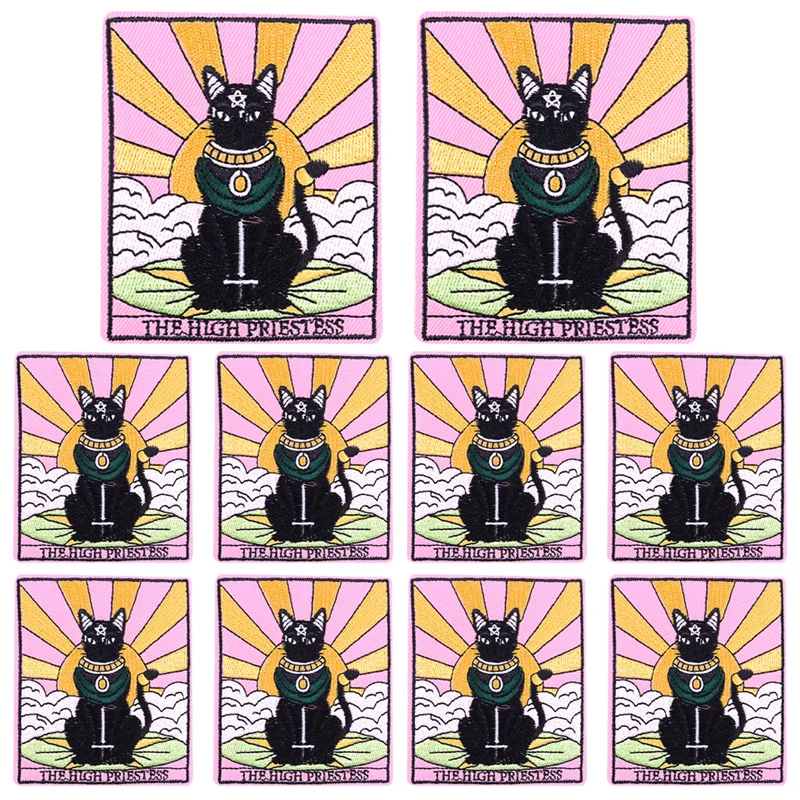 Parche bordado de gato de dibujos animados, parche de costura de Tarot, parches termoadhesivos para ropa, parches para planchar, apliques DIY, 10 piezas