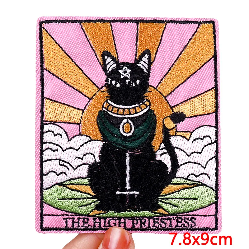 Parche bordado de gato de dibujos animados, parches bordados de Tarot/animales, parches para planchar para ropa, parches termoadhesivos, pegatinas para coser DIY