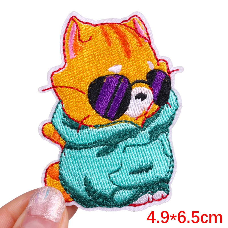 Funny Cat Embroidery Patch Animal Cat Patch Iron On Patches For Clothing Thermoadhesive Patches On Clothes Cartoon Sewing DIY