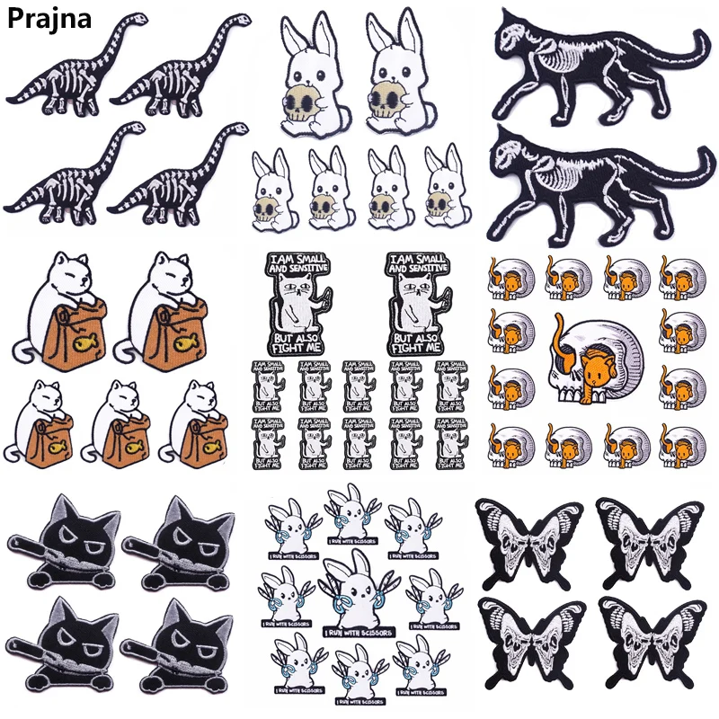 Parche bordado de gato Hippie, dibujos animados, Animal, Calavera, parches termoadhesivos para planchar en la ropa, 10 unids/lote