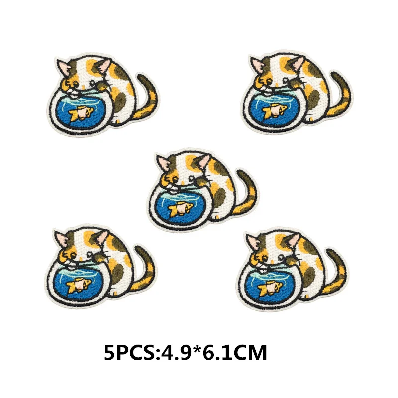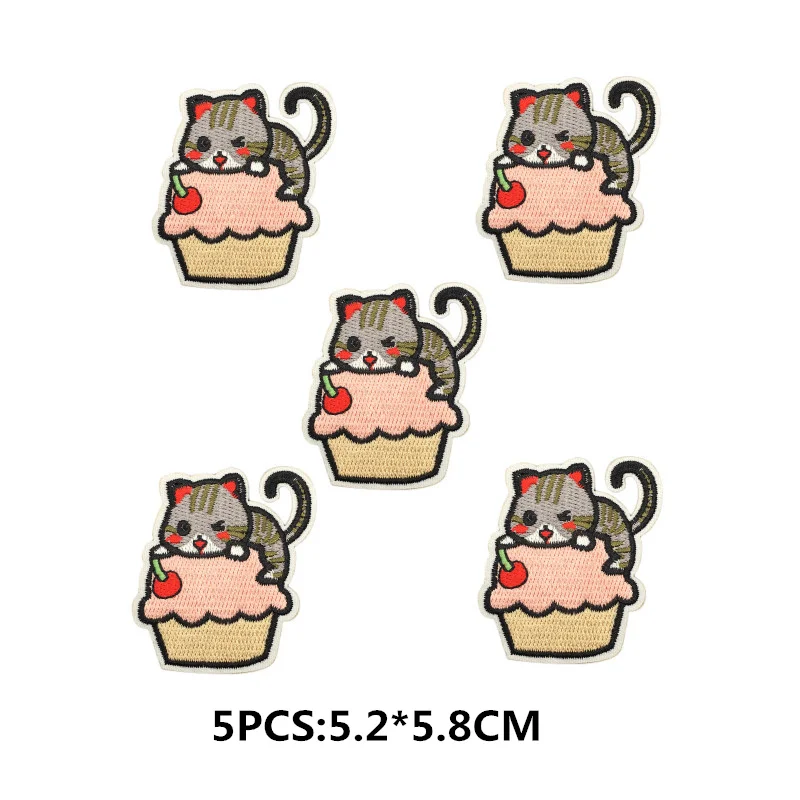 Parche bordado de gato bonito de 5 piezas, apliques de arcoíris, parches para planchar en la ropa, parches de insignia de Anime para pegatina de ropa