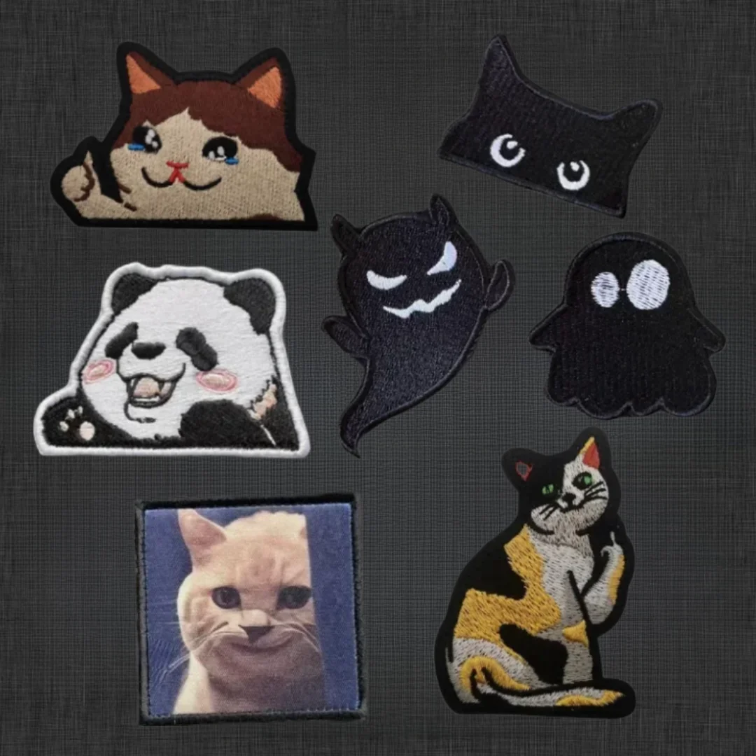 Parche bordado de gato oscuro fantasma de dibujos animados, brazalete de gato negro divertido, insignia de moral, parches de gancho y bucle de gatito, pegatinas tácticas para mochila