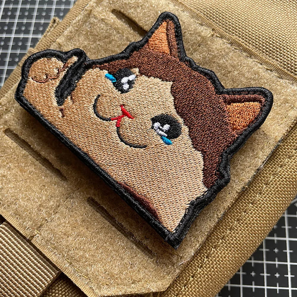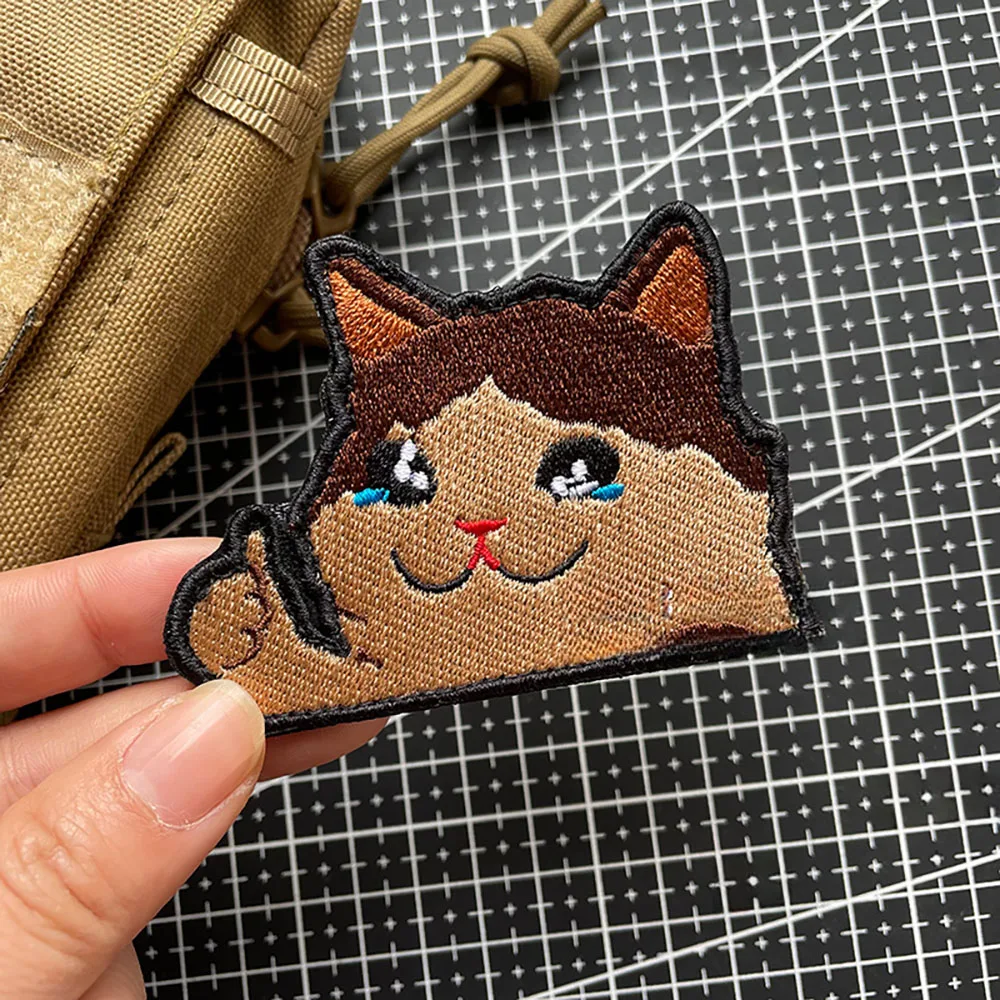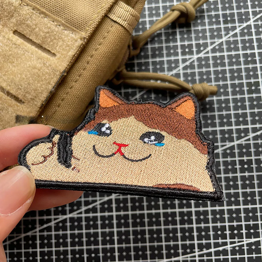 Parche bordado de gato con pulgares hacia arriba, insignia de moral táctica en mochila, pegatina de gancho y bucle, animación DIY