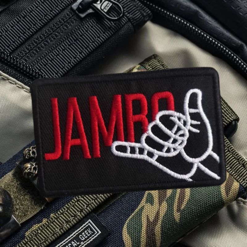 Parche bordado de gestos JAMBO, parches militares de gancho y bucle para ropa, insignia de moral táctica, pegatinas decorativas para mochila