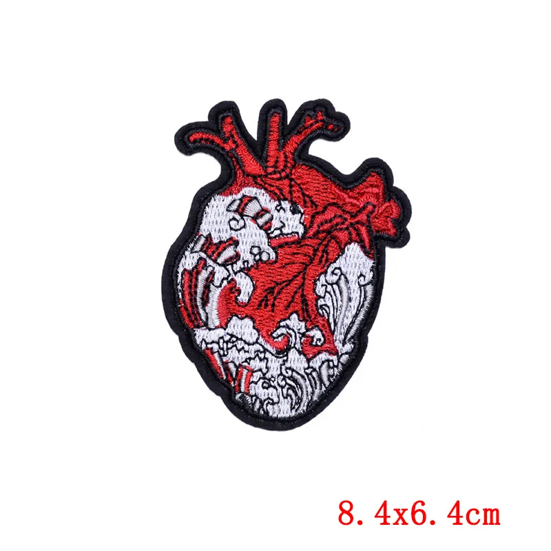 10 unids/lote corazón onda Van Gogh bordado parche hierro en parches para ropa Punk calavera coser bordado pegatina ropa apliques