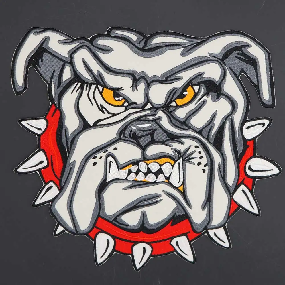 Parche bordado grande de Bulldog de dibujos animados, pegatinas de ropa Punk, accesorios de ropa, insignia