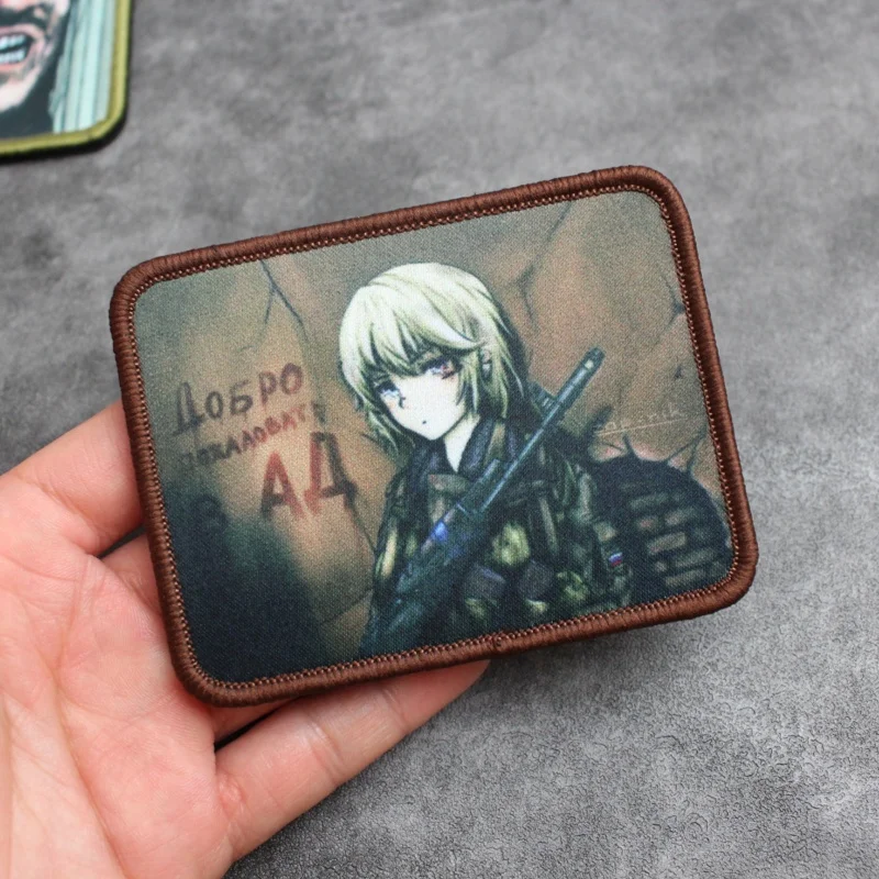 Parche bordado de guerrero ruso para hombre, insignia táctica de expresión de personajes de Anime para decoración de ropa y mochila