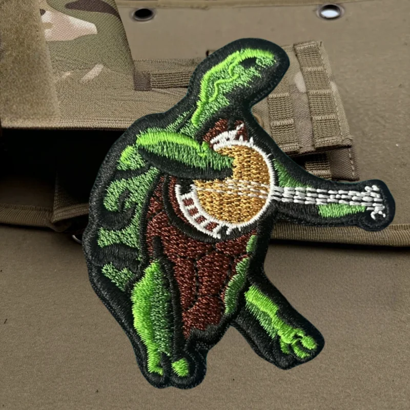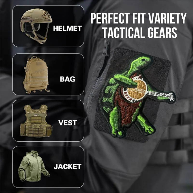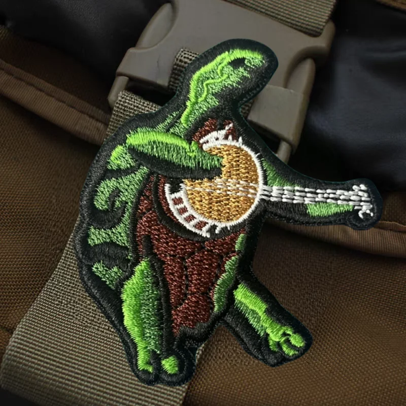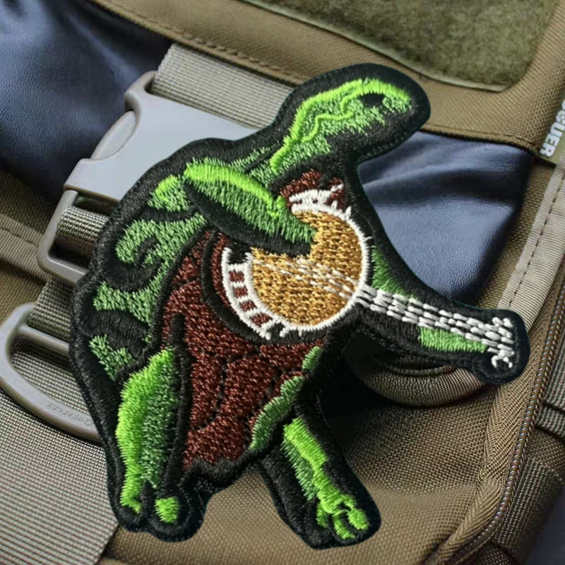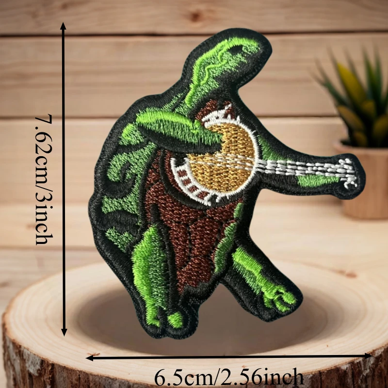 Parche bordado de guitarra para tocar tortuga, insignia de moral de gancho y bucle táctico, pegatinas decorativas para mochila, parches para brazalete para ropa