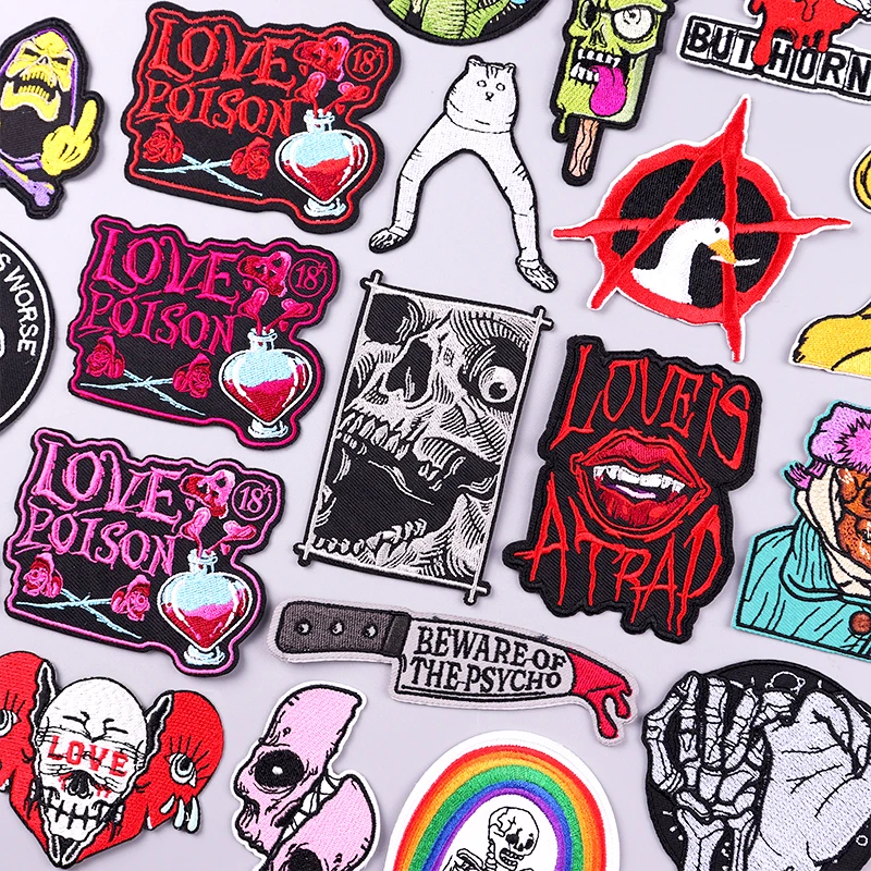 Parche bordado de Hip Hop, parches para planchar para ropa, parches bordados de calavera Punk para ropa, parche Fusible, pegatina de bucle de gancho