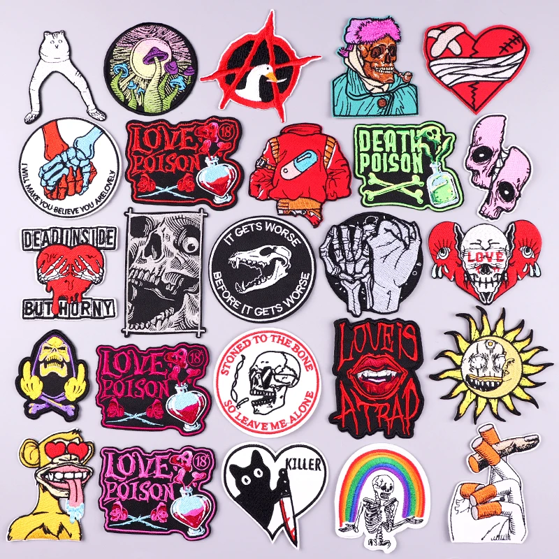 Parche bordado de Hip Hop, parches para planchar para ropa, parches bordados de calavera Punk para ropa, parche Fusible, pegatina de bucle de gancho