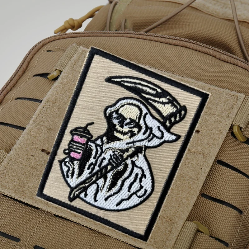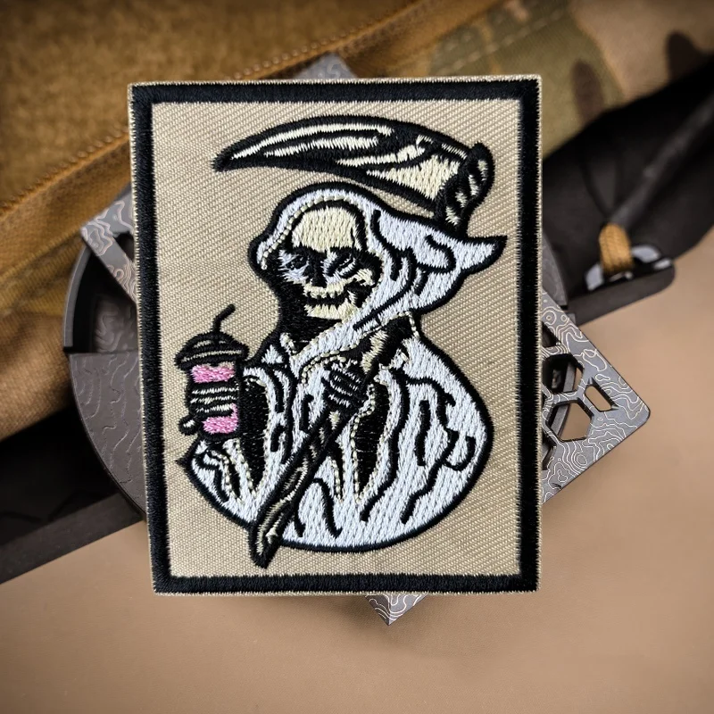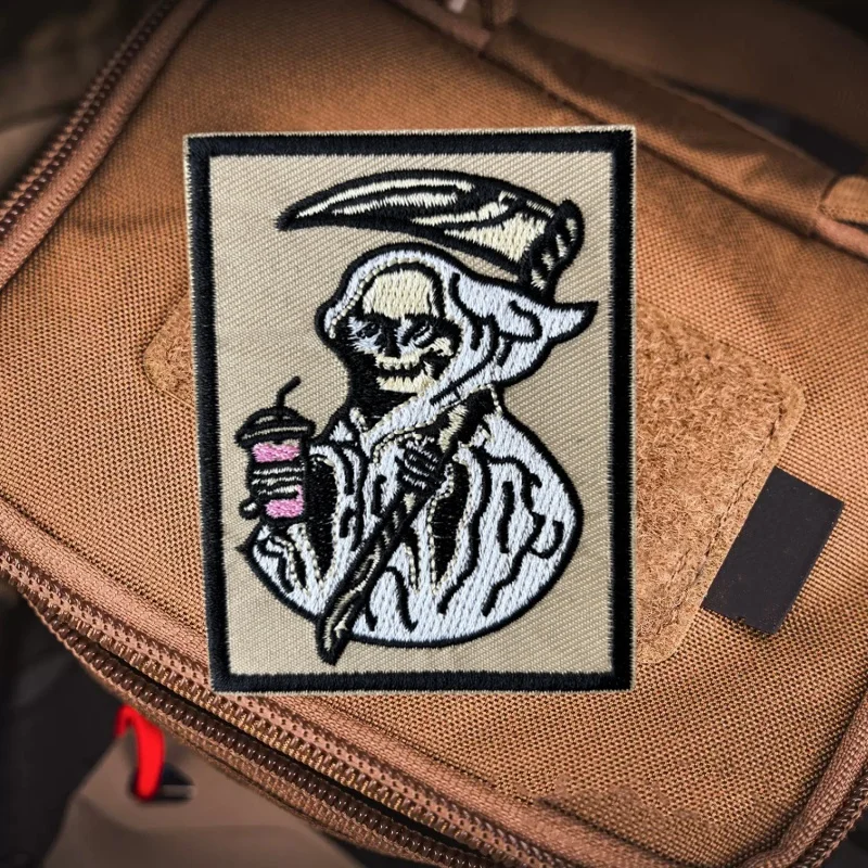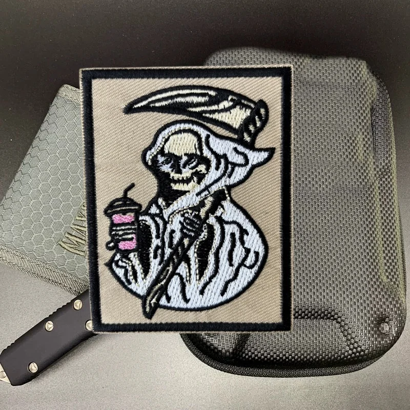 Parche bordado de hoz y esqueleto para ropa, insignias tácticas de moral, parche de bucle de gancho, brazalete militar, pegatinas para mochila