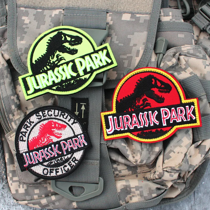 Parche bordado Jurassk Park, insignias tácticas de la era de los dinosaurios para ropa, mochila, chaqueta de Velcro, pegatinas DIY, aplicaciones