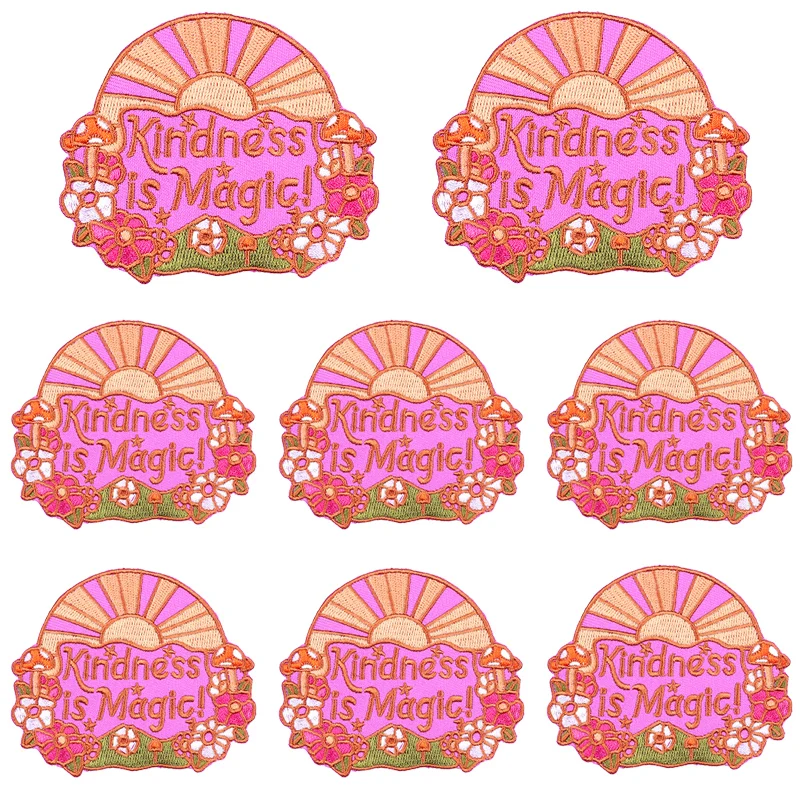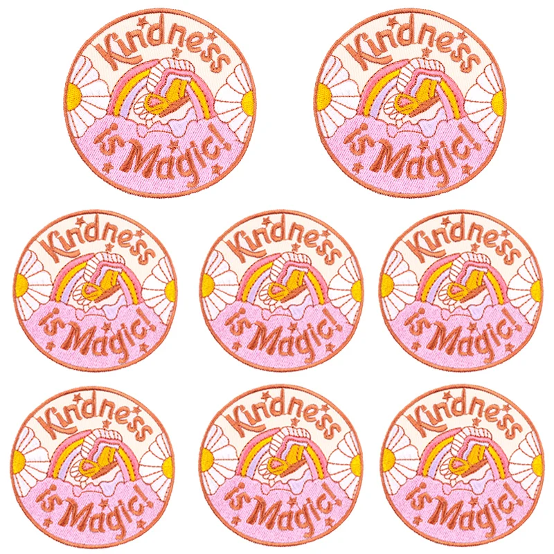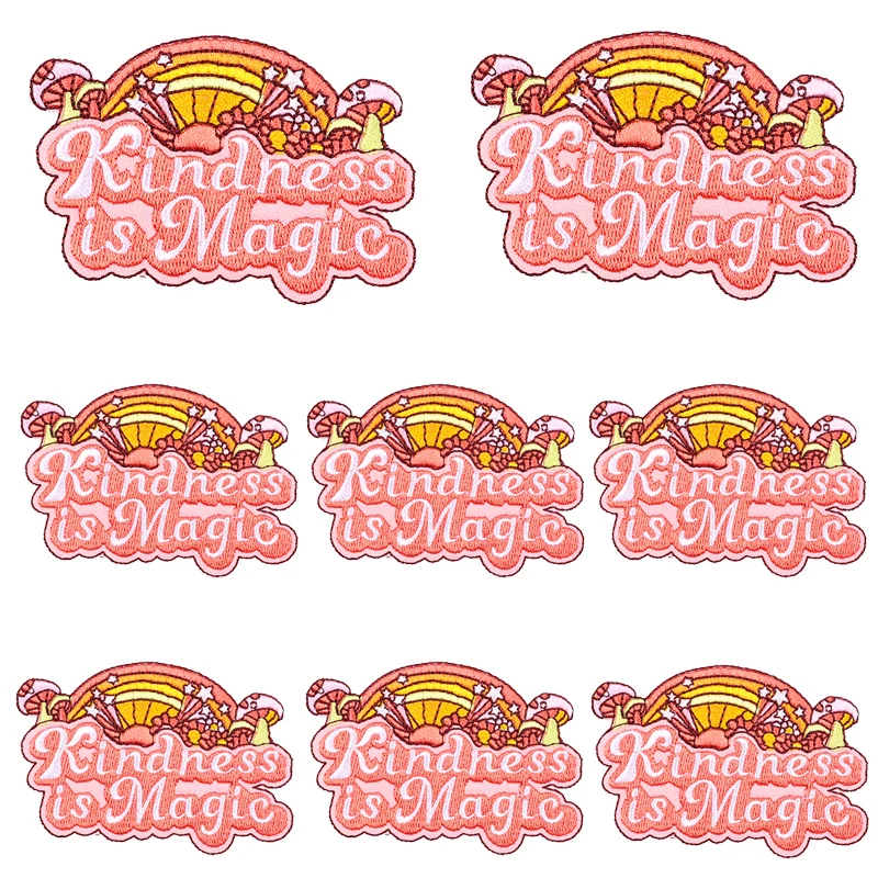 Kindness Is Magic/parche de dibujos animados Arco Iris carta bordado parche hierro en parches para ropa parches termoadhesivos en la ropa