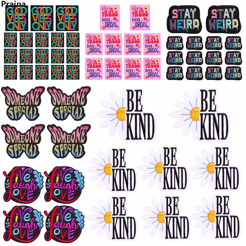 Parche bordado con letras de arcoíris de dibujos animados, parches termoadhesivos para planchar en la ropa, bricolaje, 10 unids/lote