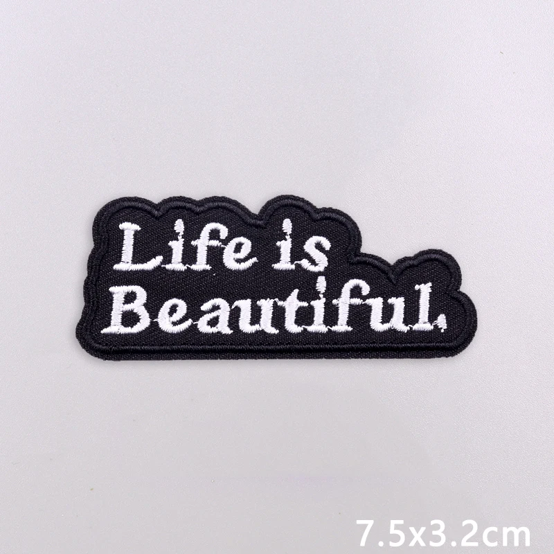 Parche bordado con letras blancas y negras, parches termoadhesivos para ropa, costura/insignias plegables