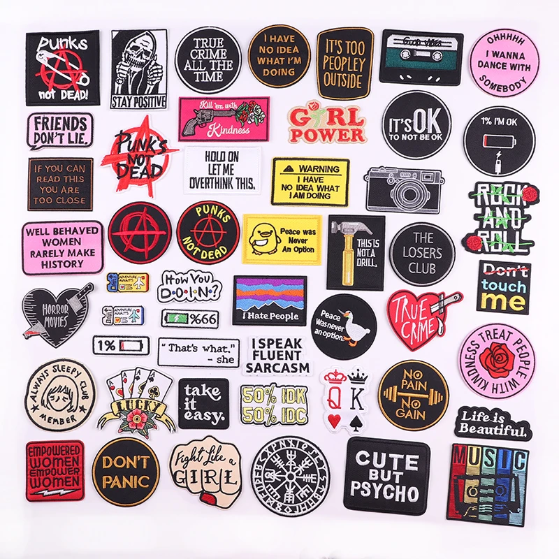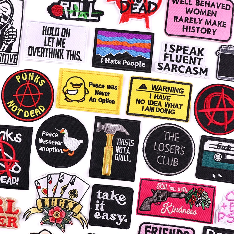 Parche bordado de letras con personalidad, chaqueta, mochila, coser DIY, parches para planchar para ropa, parches de letras de dibujos animados/Punk para ropa