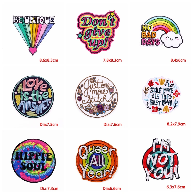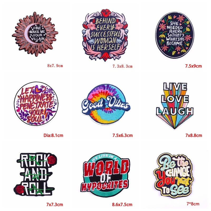 Parche bordado con 10 letras de las letras, eslóganes inspiradores, parches termoadhesivos, parches para coser, plancha para ropa, bricolaje