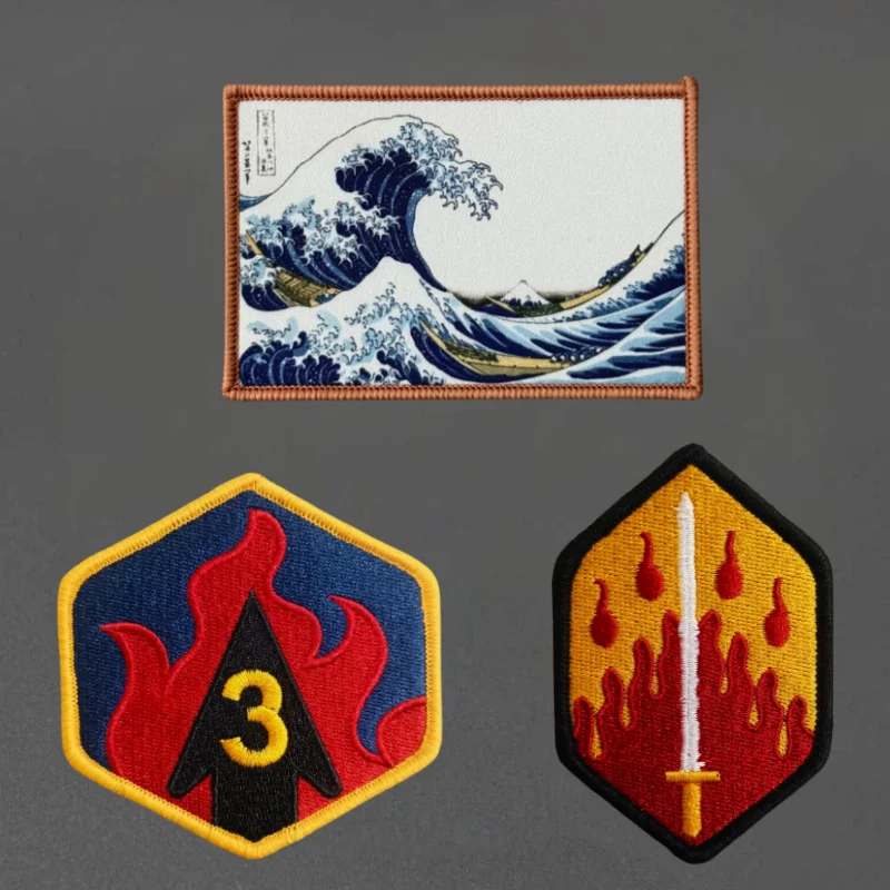 Flame&Sword Embroidery Patch Sea Wave Tactical Hook&Loop Morale Badge Backpack Decorative Stickers Armband Patches for Clothing