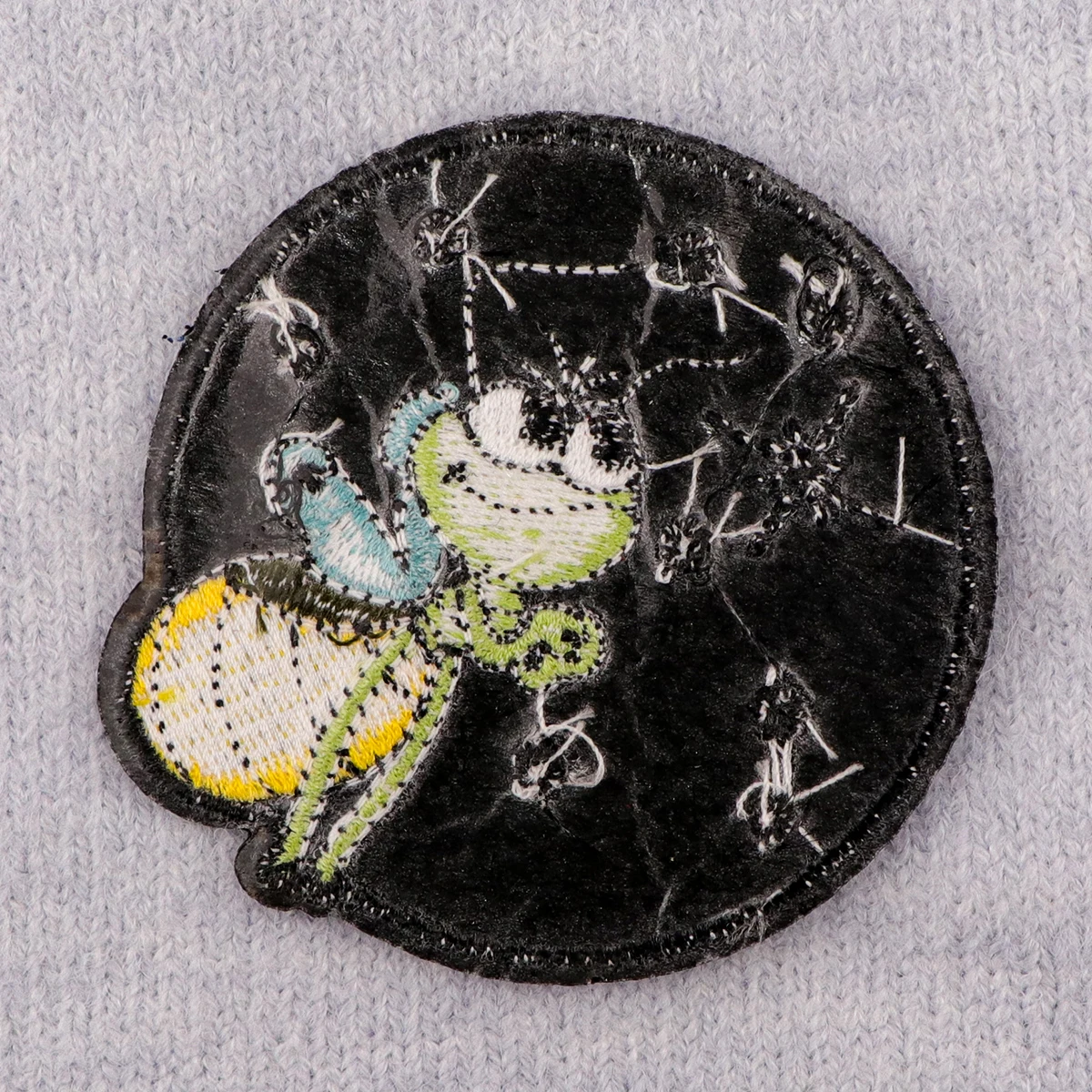 Hay pegamento en la parte posterior, que se puede planchar o coser.