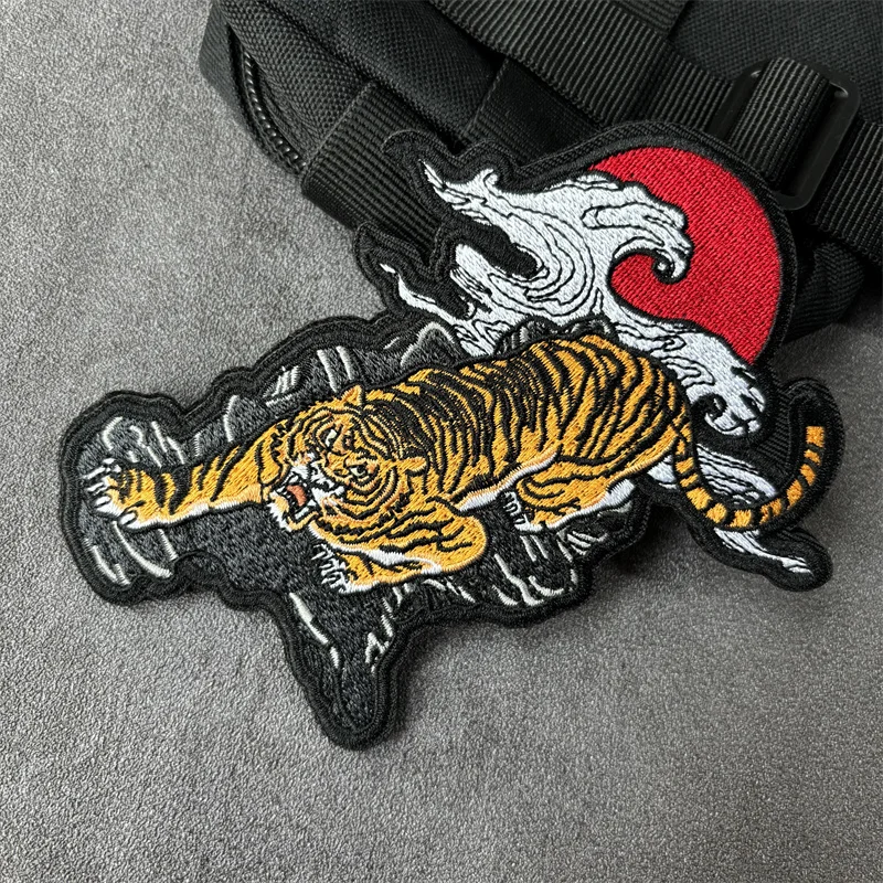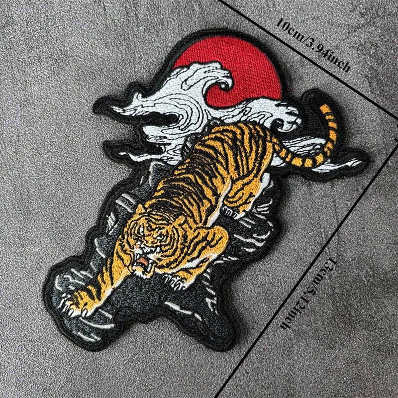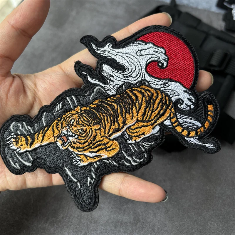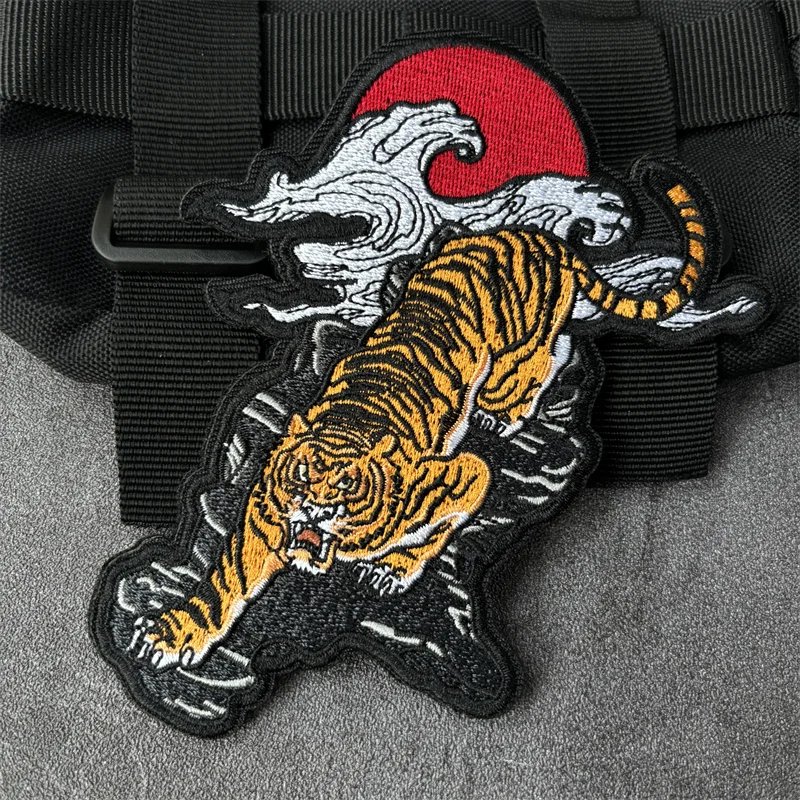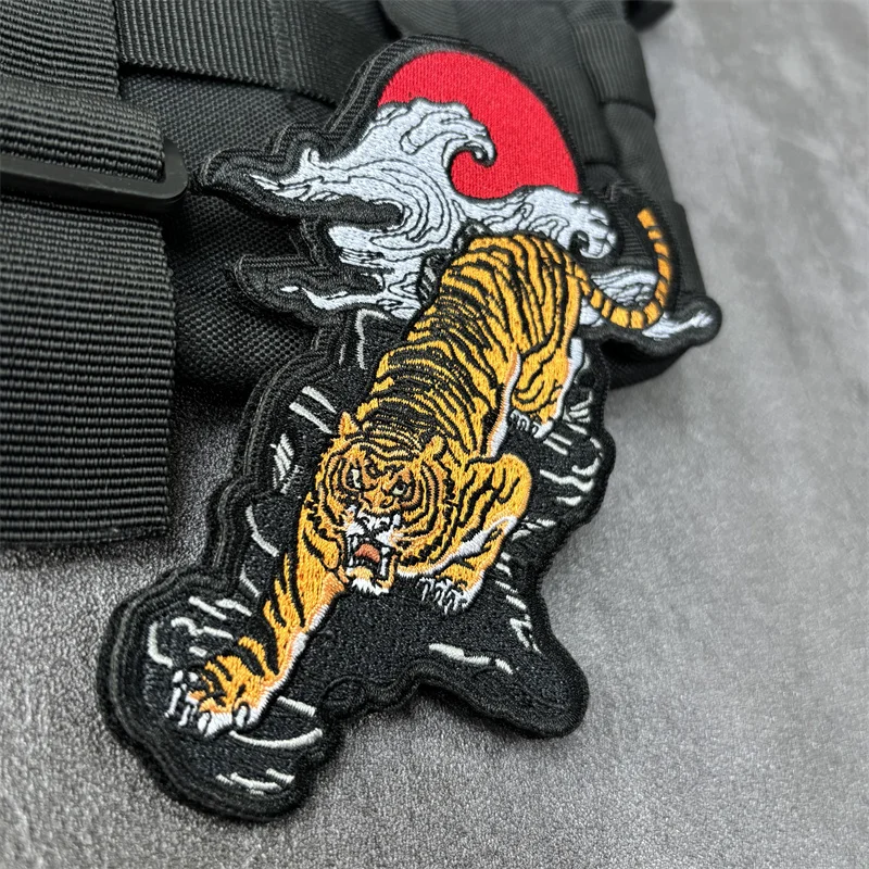 Parche bordado de luna de sangre de tigre crouchando, pegatina táctica de moral de Animal de tigre, parche militar con bucle de gancho, mochila de ropa