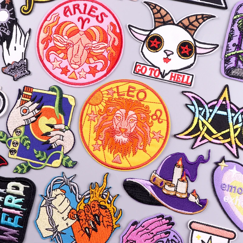 Astrología brujería parche bordado mágico hierro en parches para ropa doce constelaciones Aries parches para Pegatinas de ropa