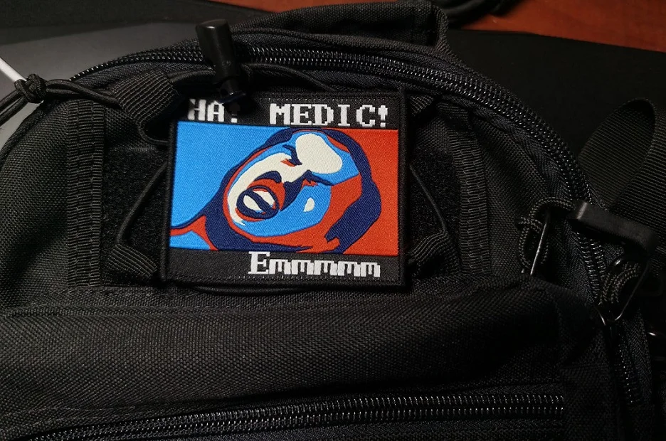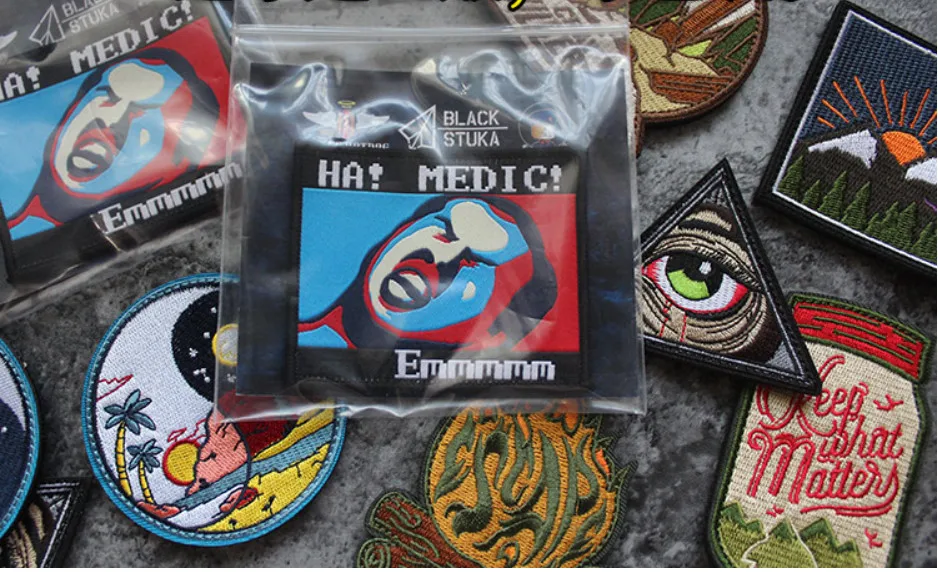 Parche bordado médico 'Ha' para personas mayores, guapo, energético, sabor súper pesado, bestia, insignia de expresión exagerada divertida táctica