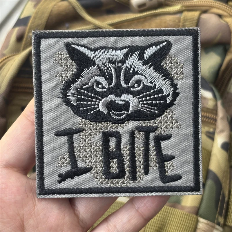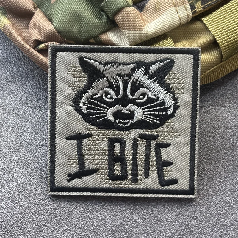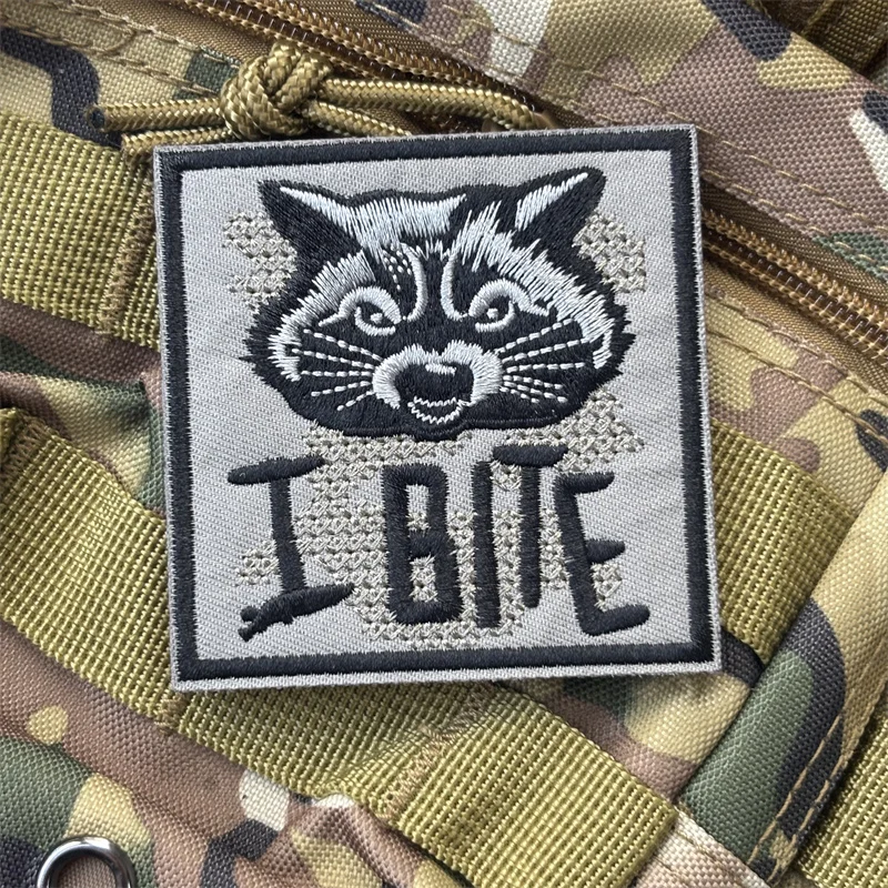 Parche bordado militar táctico I BITE en ropa, insignias de moral mapache, parches adhesivos para mochila
