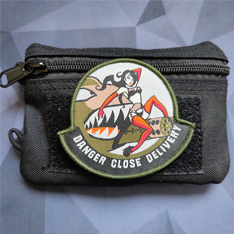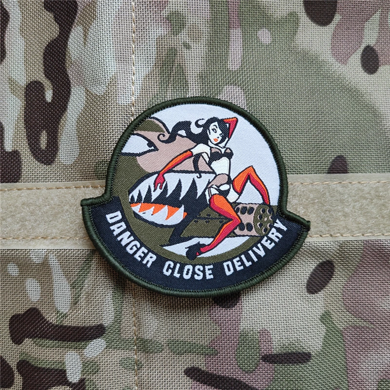 Parche bordado de missiles de tiburón para soldados femeninos, insignia táctica para decoración de ropa y mochila, entrega cerrada de peligro