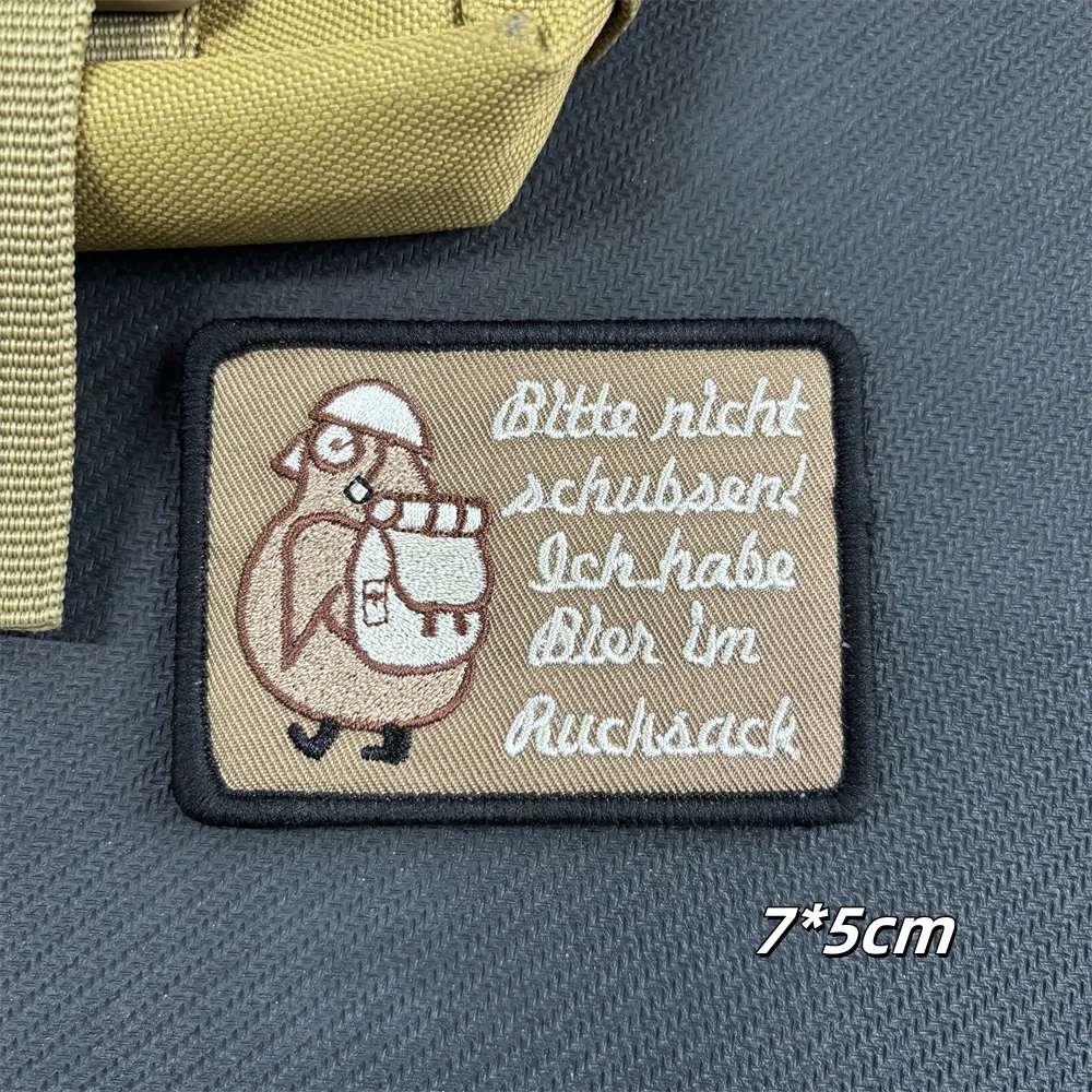Bitte Nicht Schubsen Ich Habe Bier im Mochila Parche bordado Diversión Clete Penguin Mochila Moral Insignia Táctica Pegatinas de tela