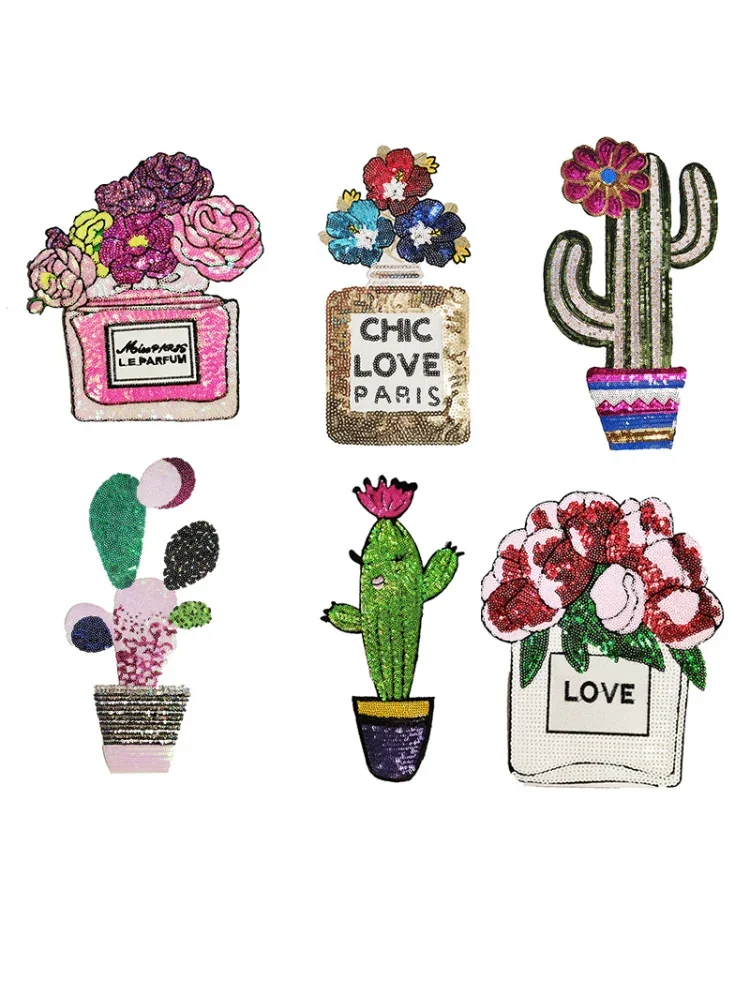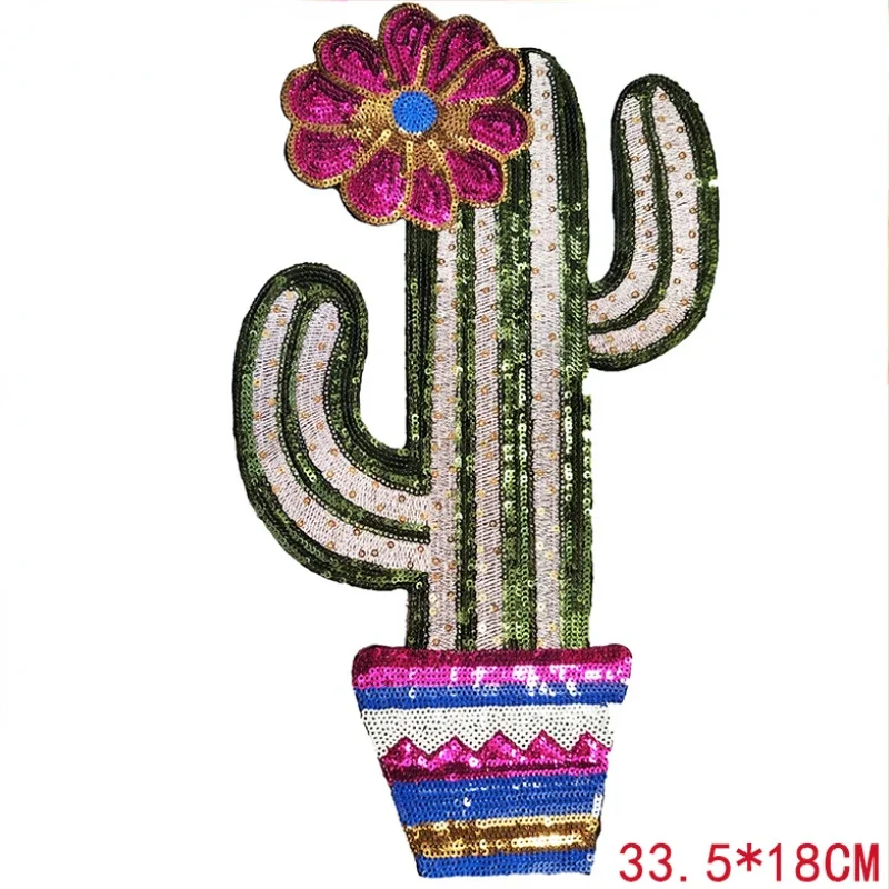 Parche bordado de moda, accesorios de ropa bordados de lentejuelas, apliques bordados de flores de Cactus, parche de planchado para ropa
