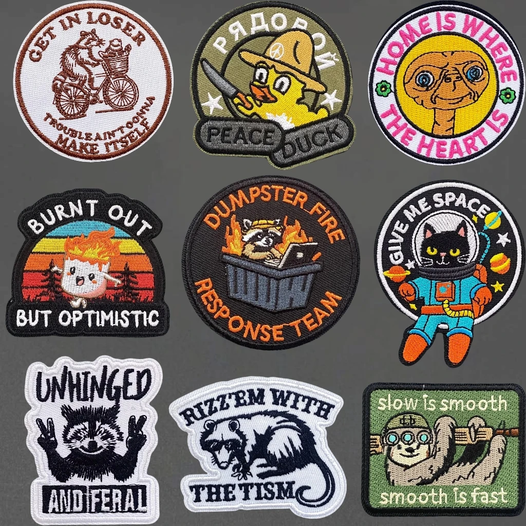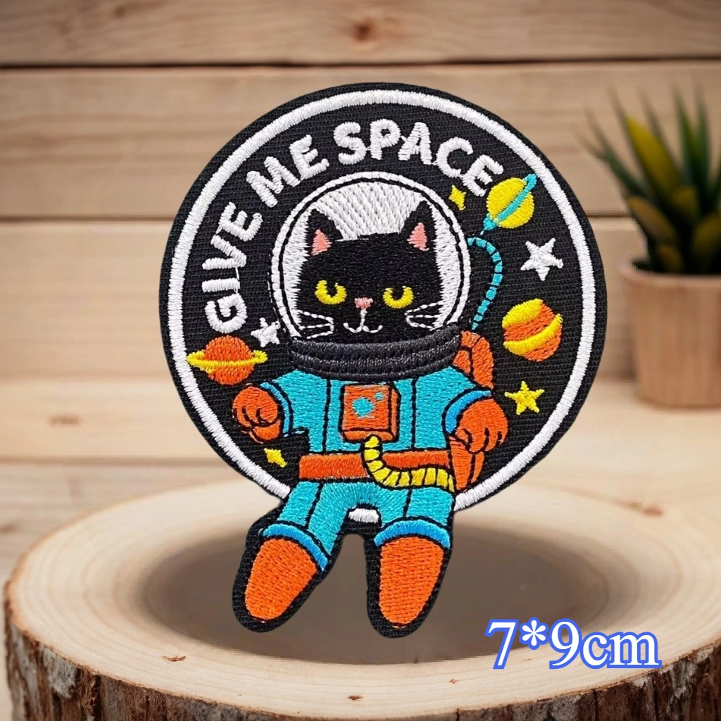 Parche bordado de mono de Anime, insignia de moral de gancho y bucle táctico de gato espacial, pegatinas militares para mochila, parches para abrazadera para ropa