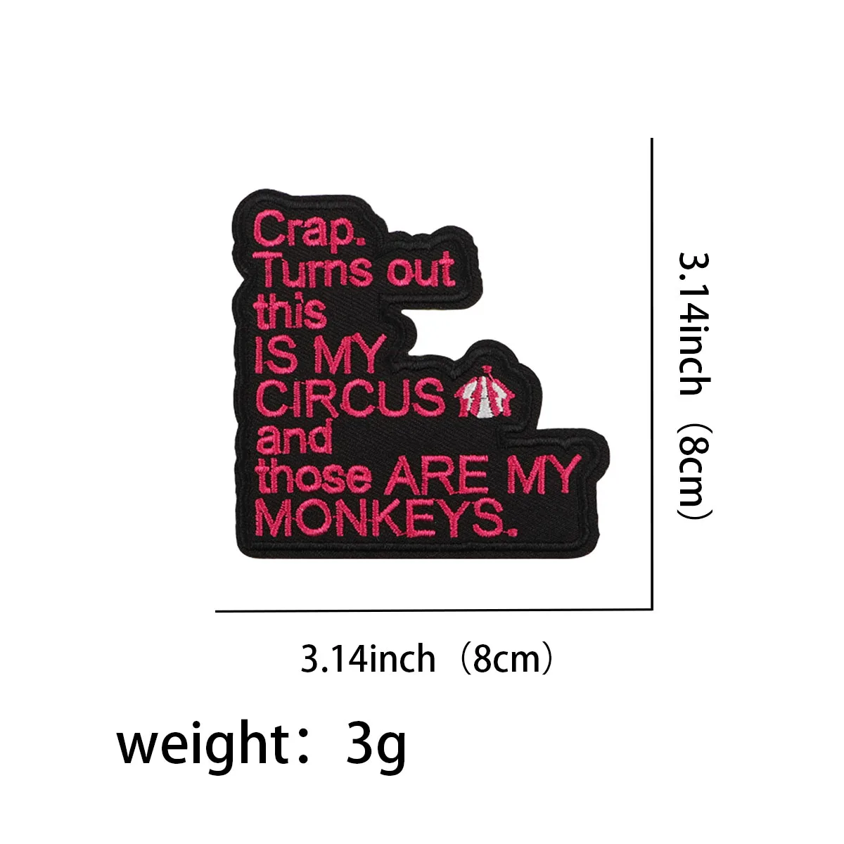 Parche bordado de monos "circo", citas humorísticas, parches termoadhesivos para planchar para ropa, insignias para coser DIY
