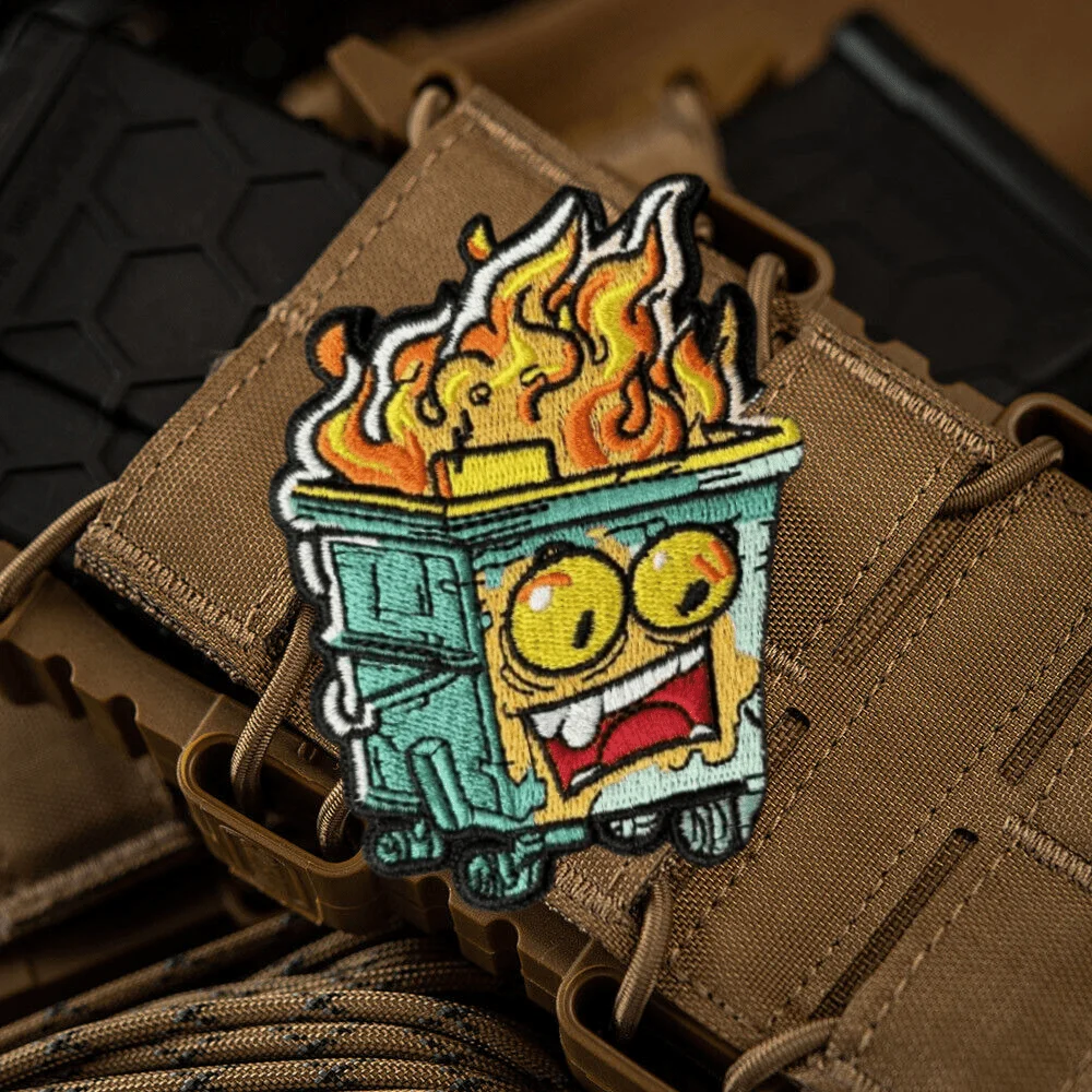 Parche bordado de moral de caja ardiente, insignia táctica militar, brazalete divertido, pegatinas para mochila con gancho y bucle